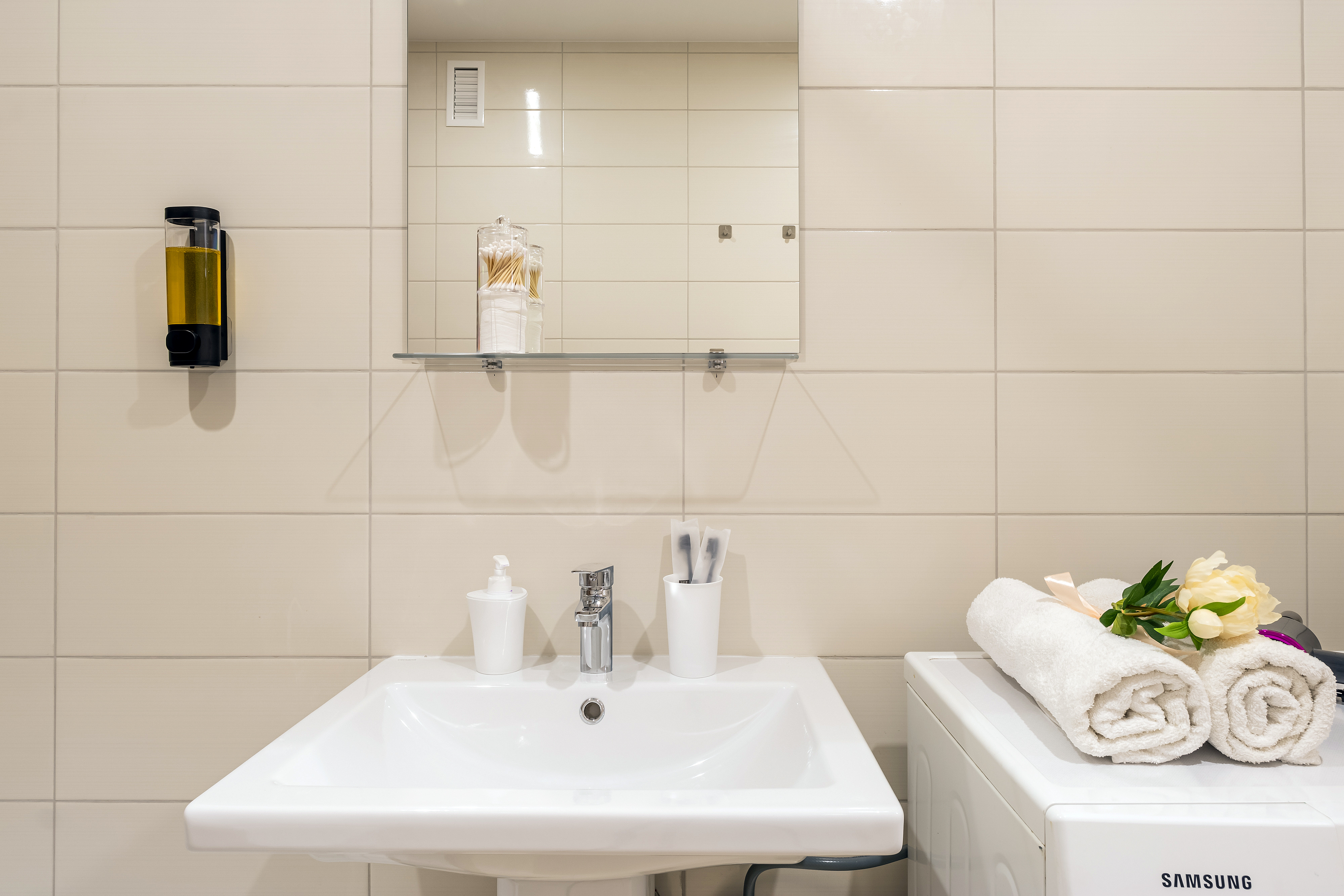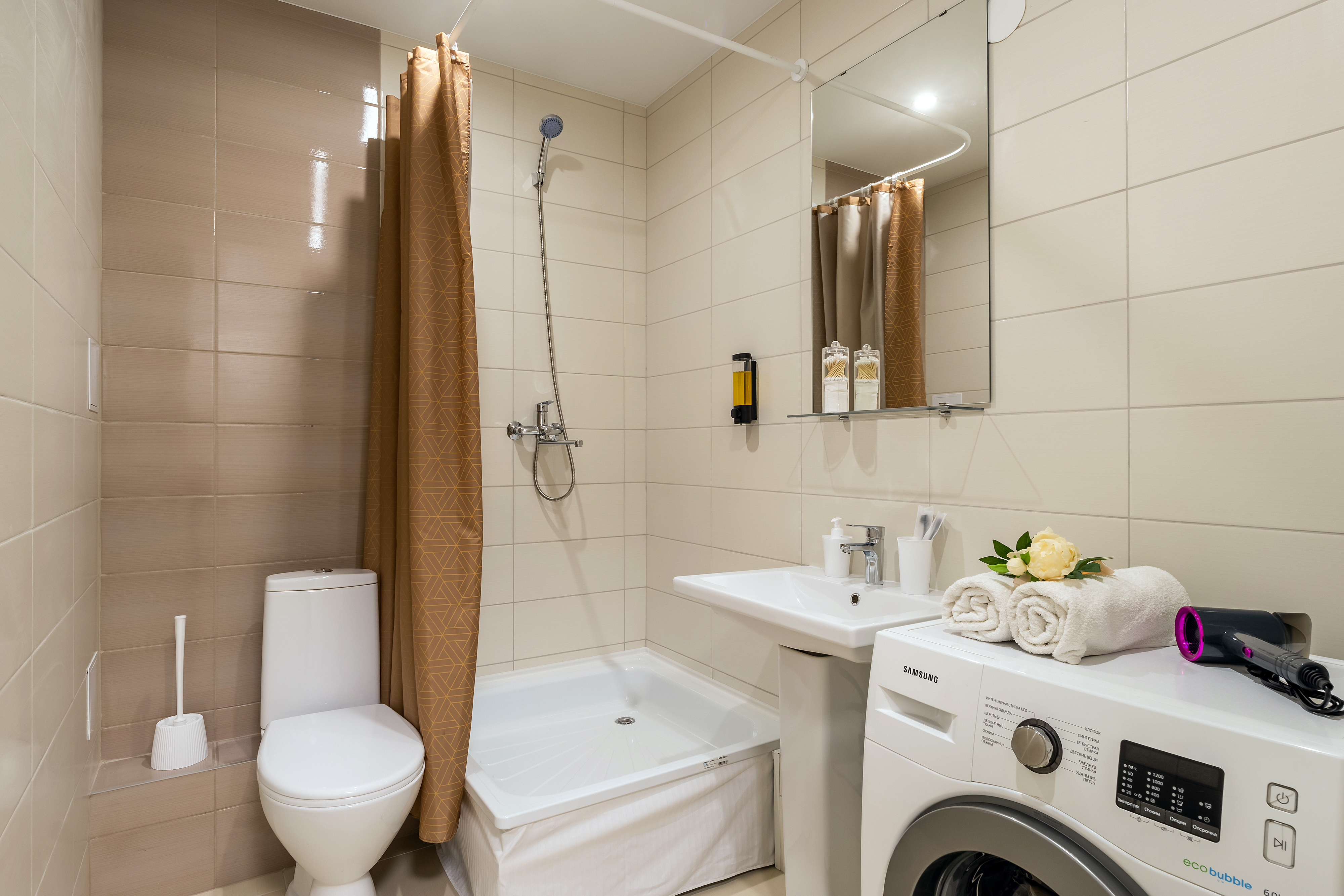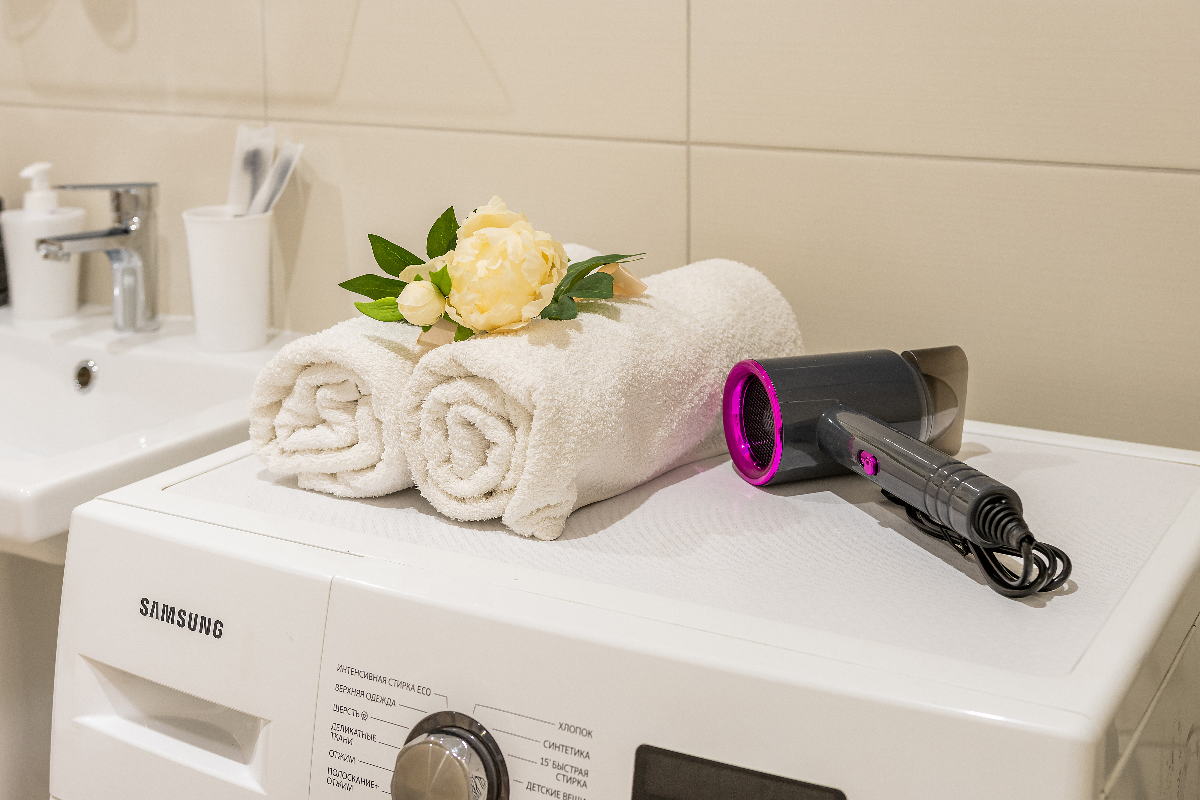 - Всё нужное для проживания: кофе, чай, посуда, утюг, стиральная машина, сушилка, гладильная доска;