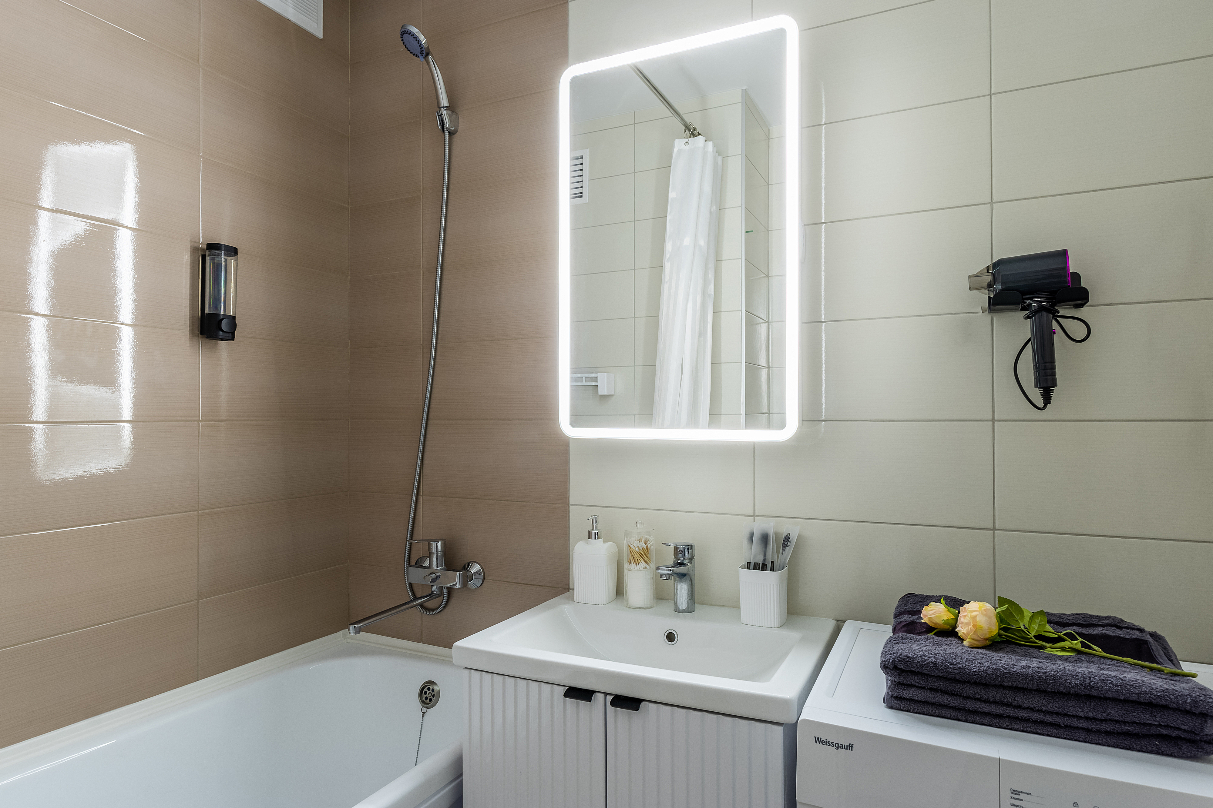 - Всё нужное для проживания: кофе, чай, посуда, утюг, стиральная машина, сушилка, гладильная доска;