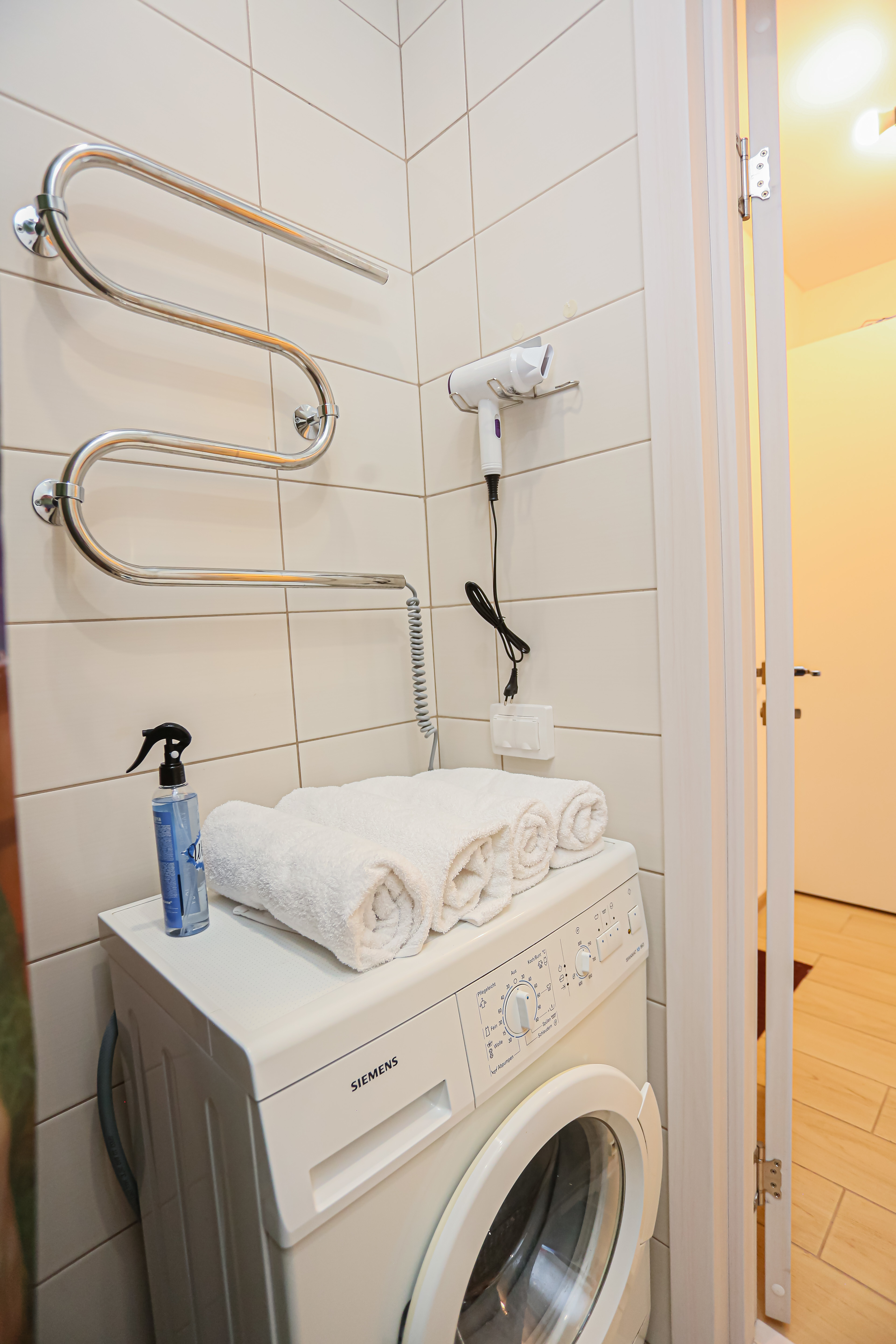 - Всё нужное для проживания: кофе, чай, посуда, утюг, стиральная машина, сушилка, гладильная доска;