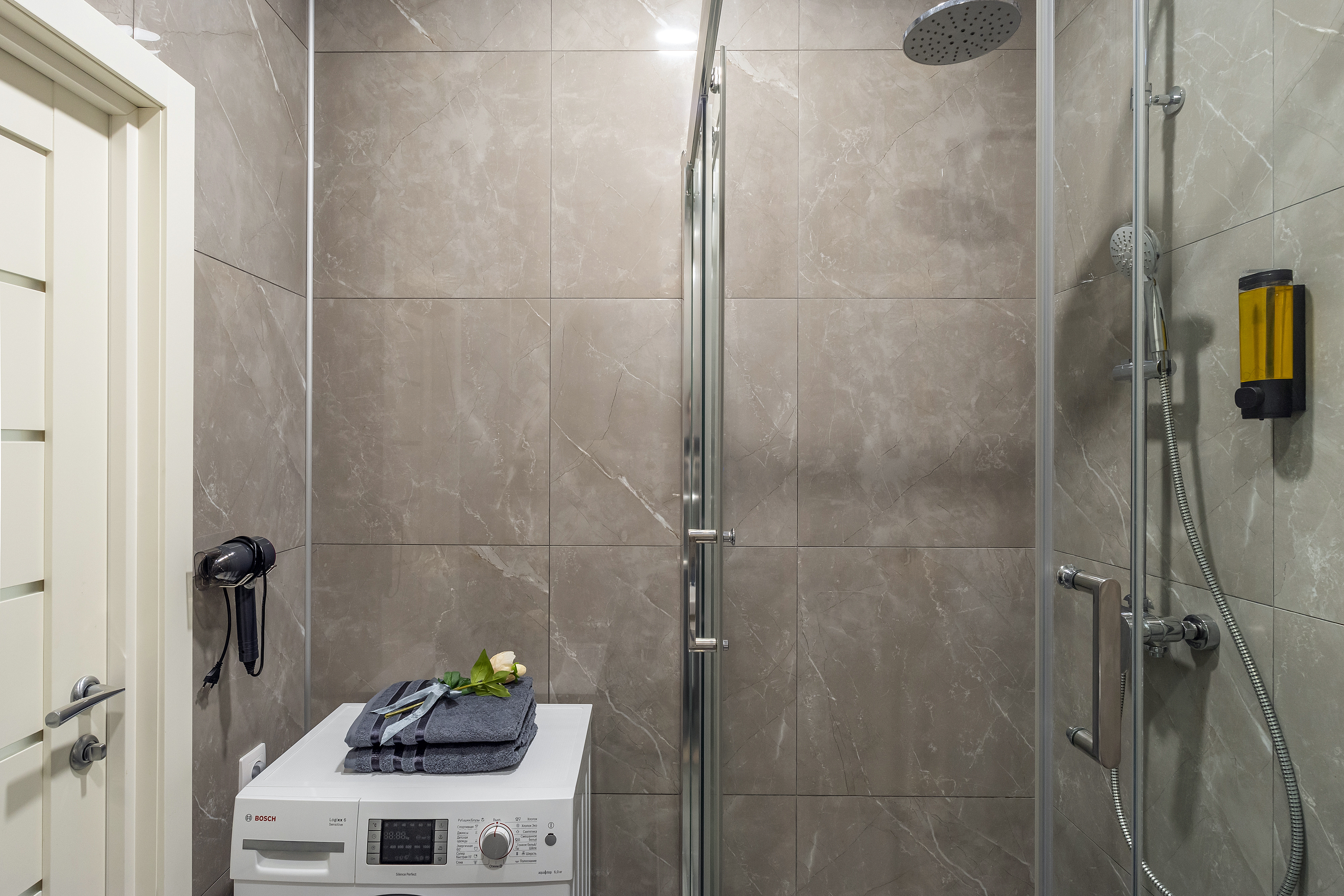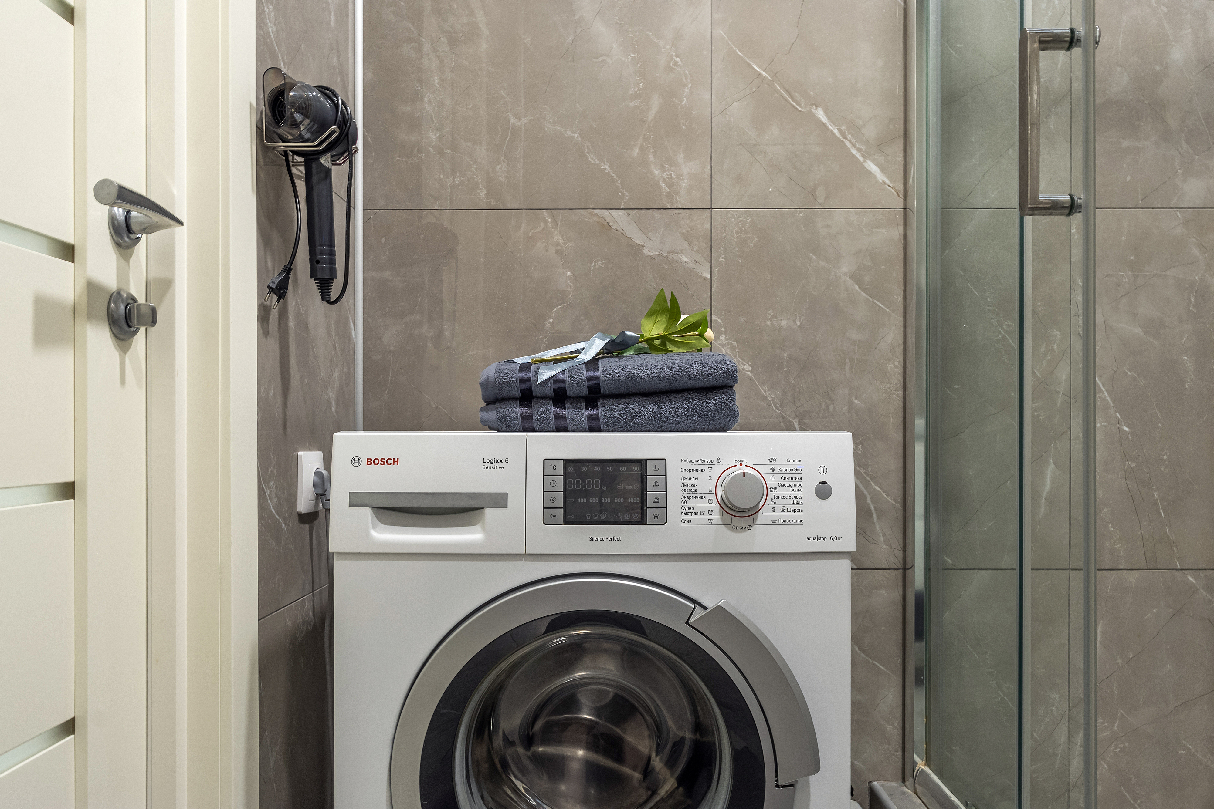 - Всё нужное для проживания: кофе, чай, посуда, утюг, стиральная машина, сушилка, гладильная доска;