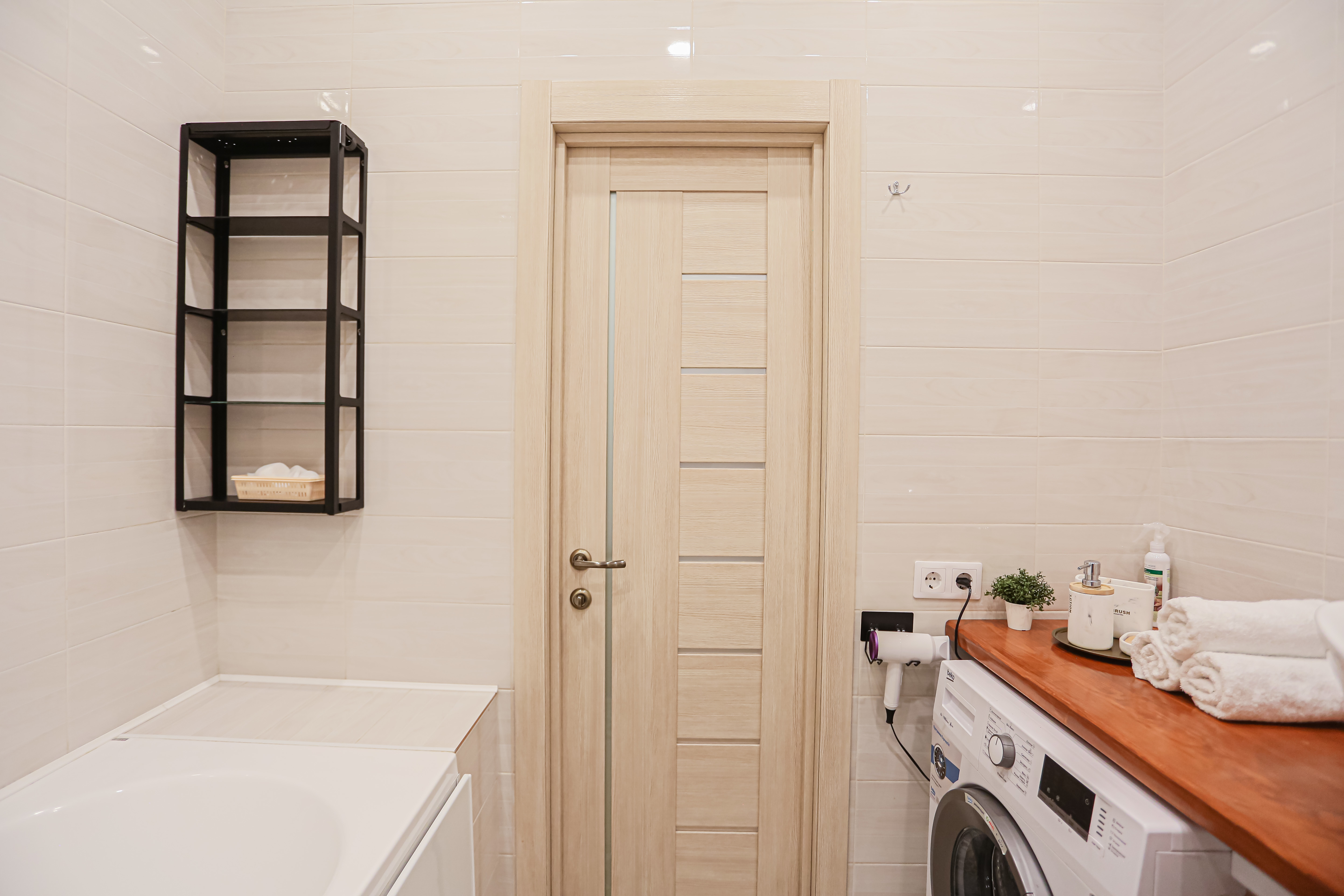 - Всё нужное для проживания: кофе, чай, посуда, утюг, стиральная машина, сушилка, гладильная доска;