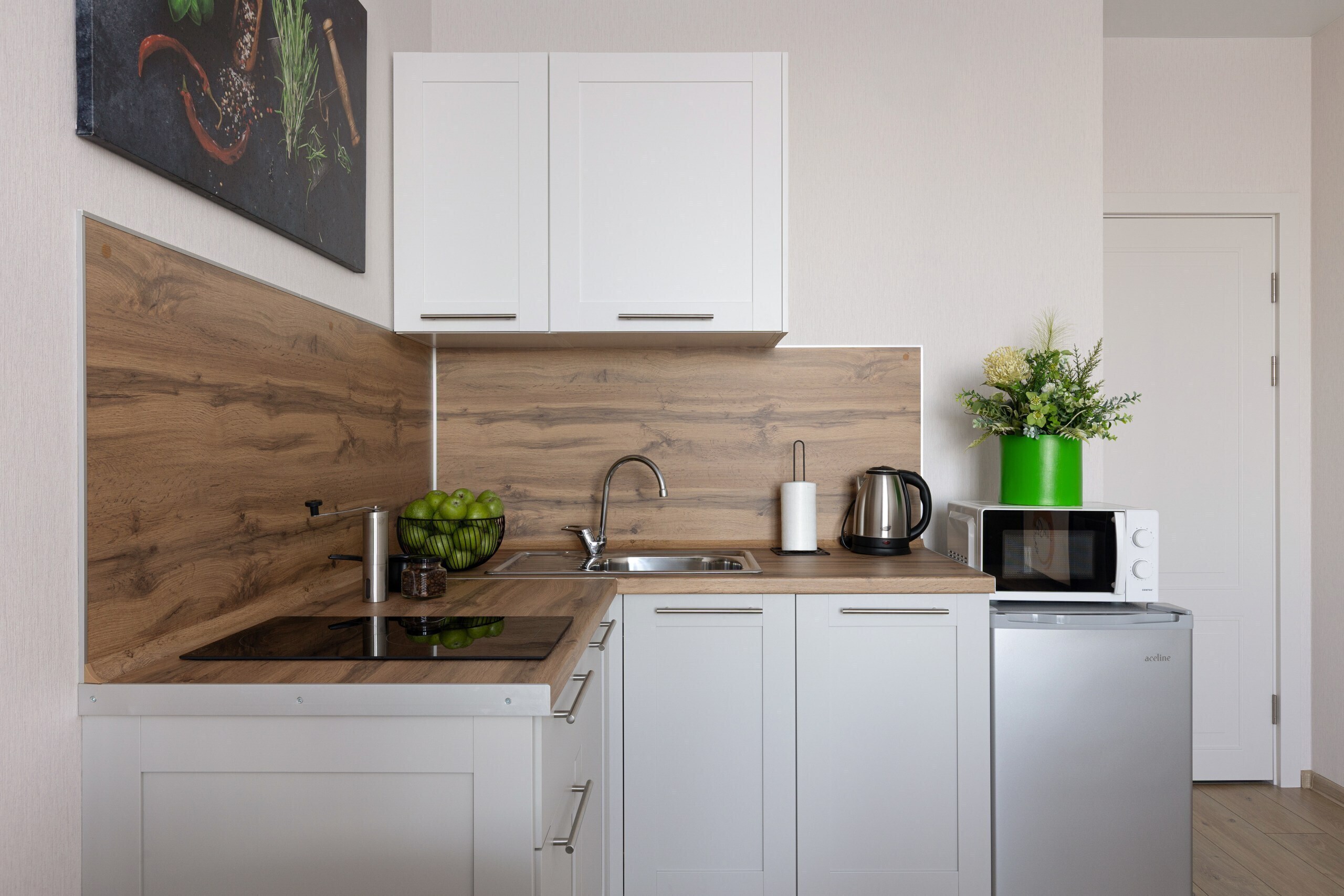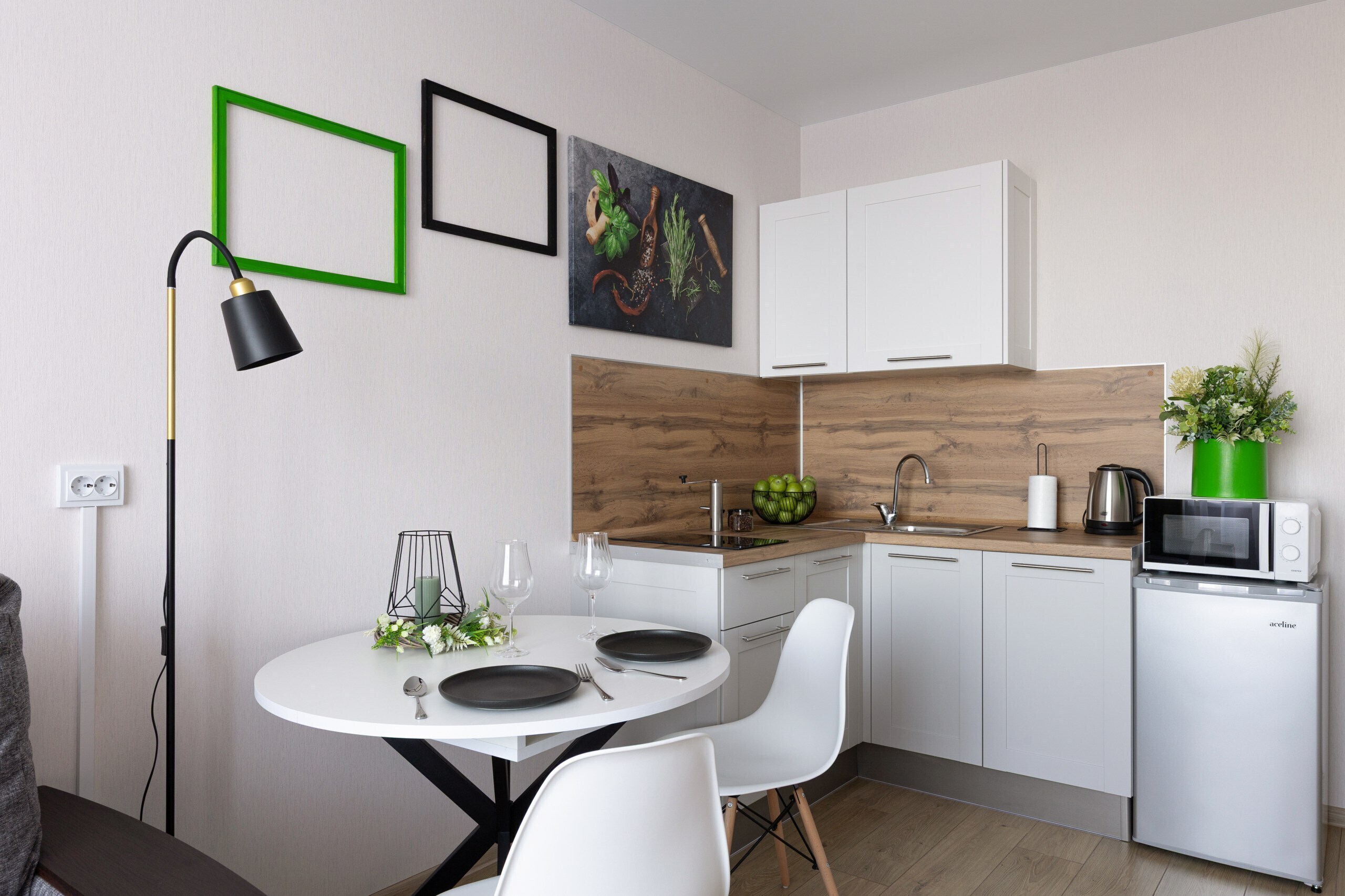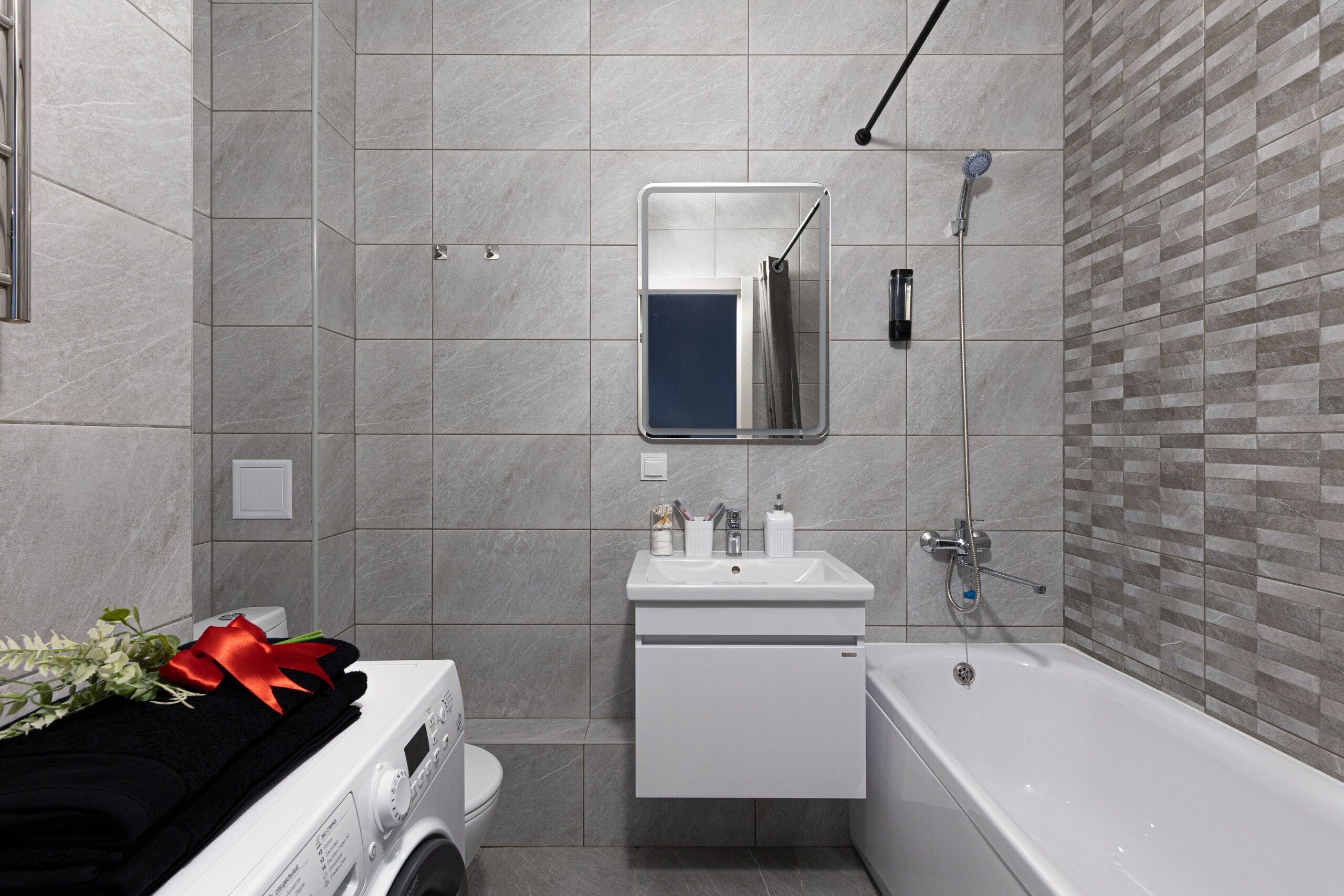 - Всё нужное для проживания: кофе, чай, посуда, утюг, стиральная машина, сушилка, гладильная доска;