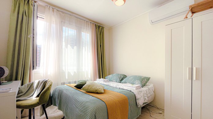 Студия - солнечная и уютная. Окна - во двор, на частный сектор и на закат солнца над опушкой леса.