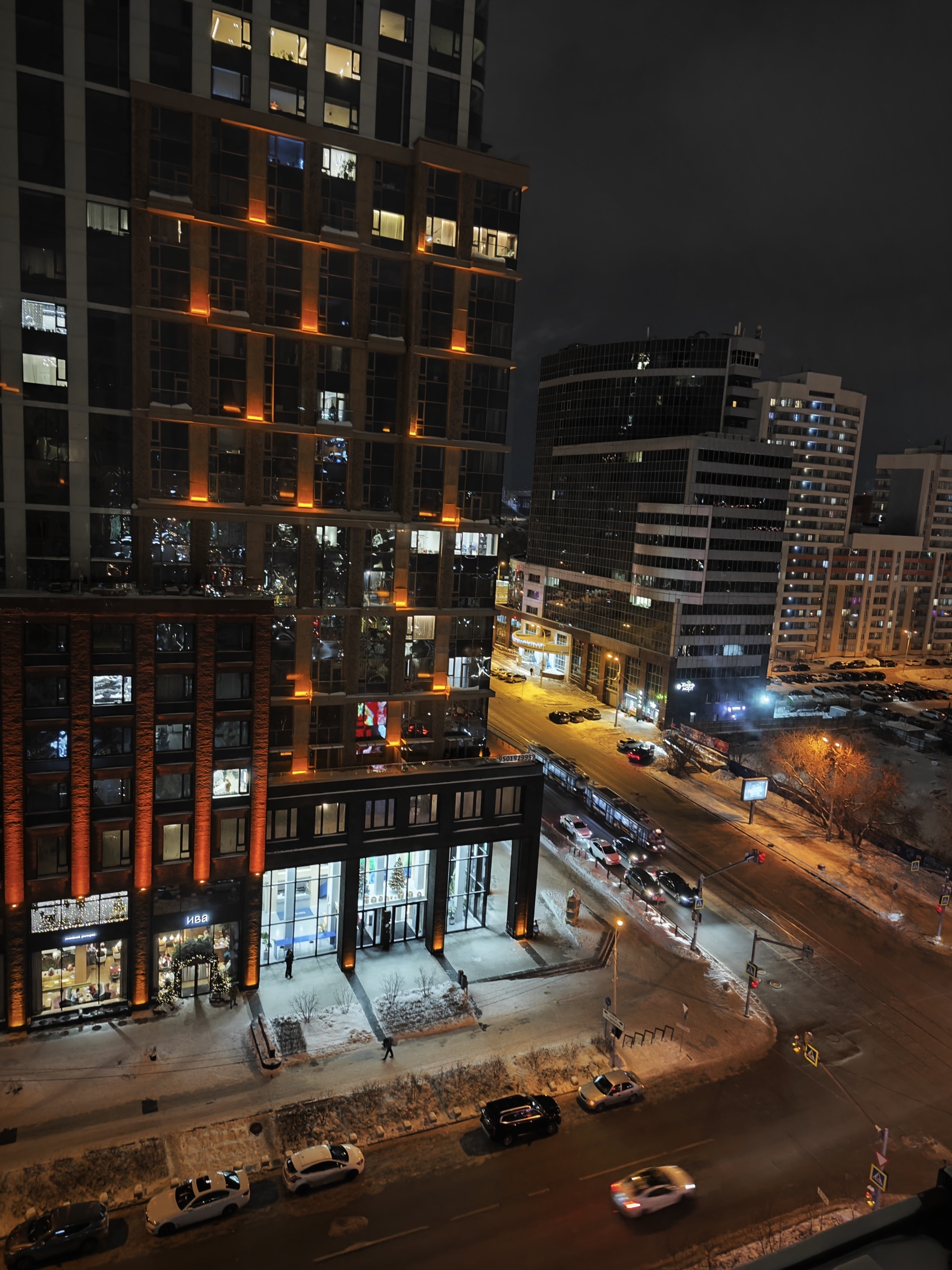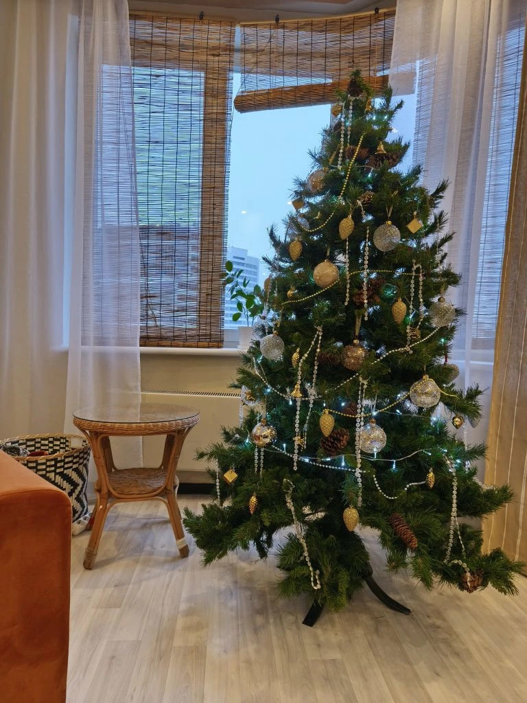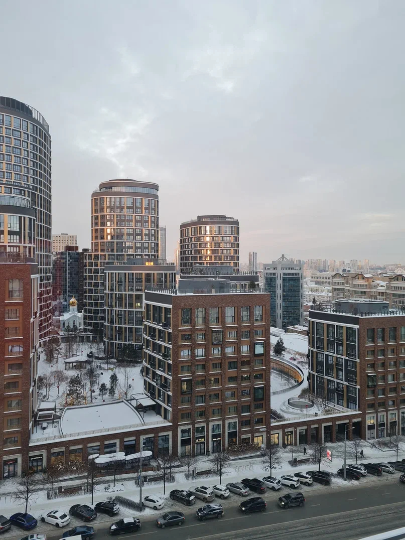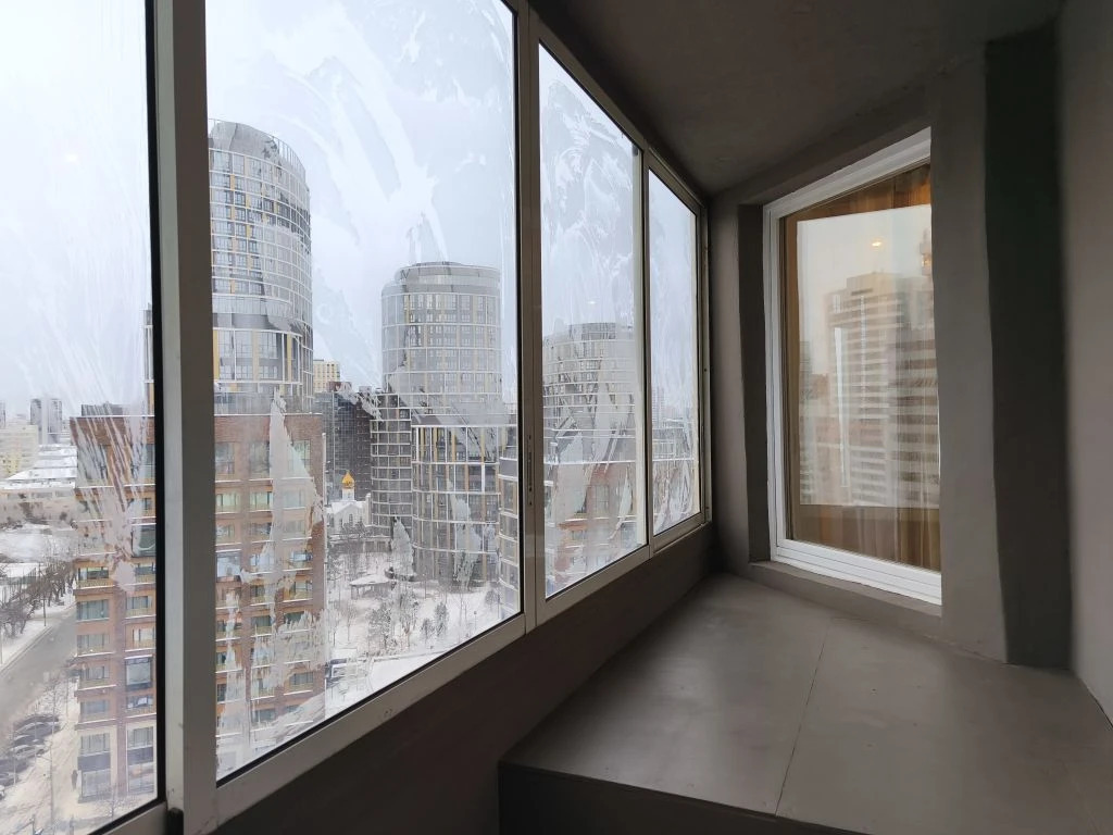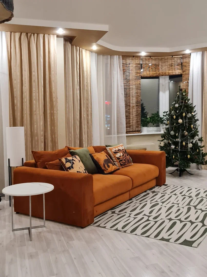 Из окон открывается впечатляющий вид на город, а в гостиной вас ждёт настенный электрокамин с эффектом живого пламени - мягкий свет, тепло, визуальный огонь и звук треска создают ощущение настоящего отдыха, особенно вечером. На лоджии - два подвесных кресла и подиум с подушками: идеальное место для утреннего кофе или вечернего бокала вина с видом на огни города.