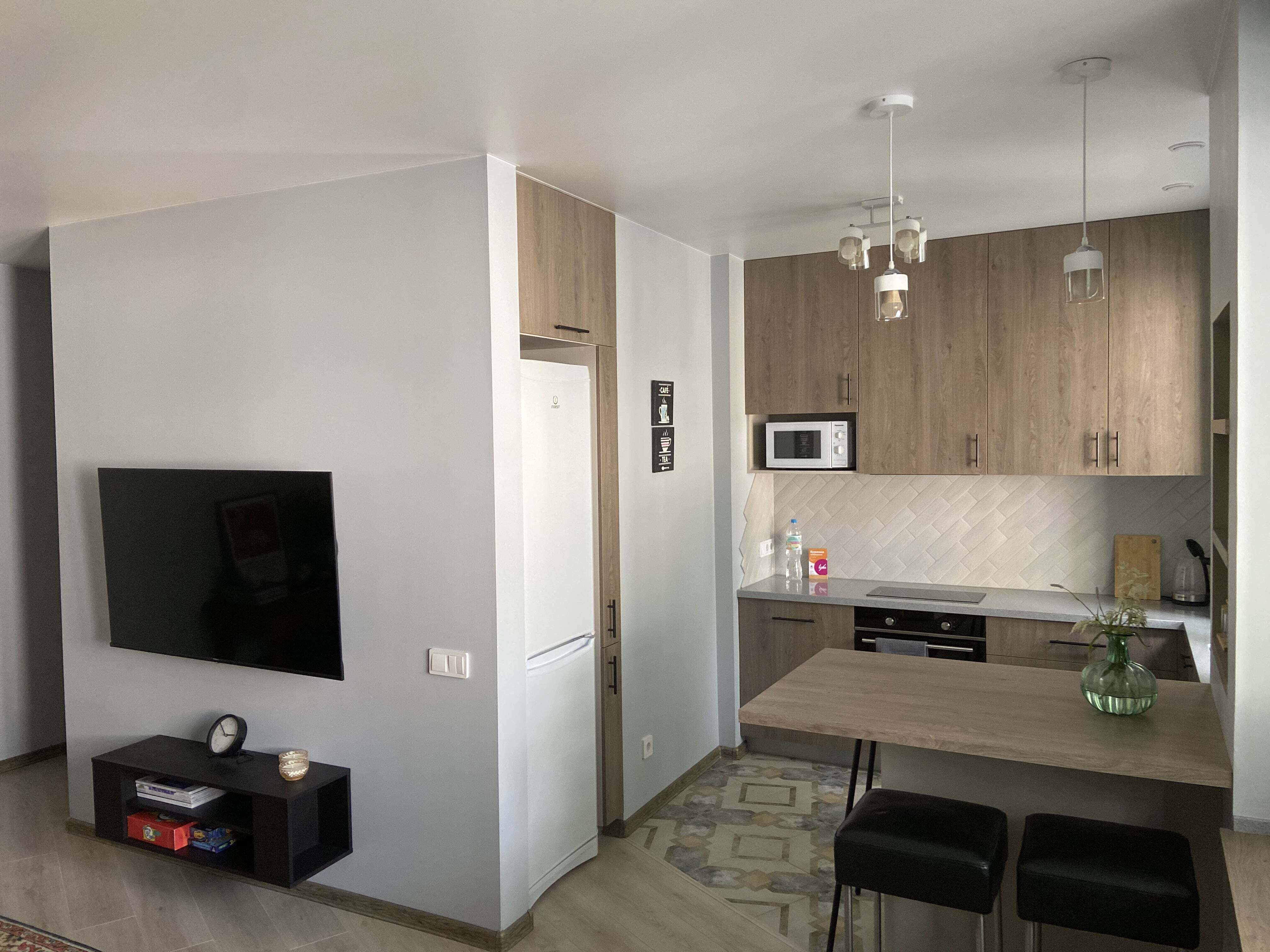 - Холодильник, варочная поверхность.