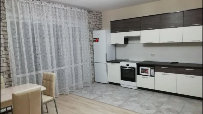 В квартире вся мебель и техника новая, две двуспальные кровати и диван, посуда, постельные принадлежности.