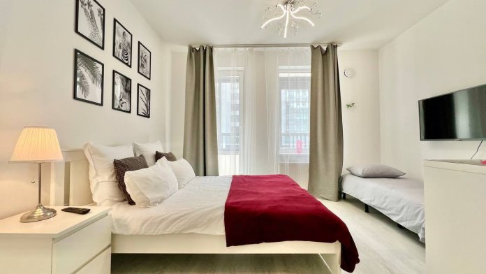 Квартира оборудована всем необходимым для проживания: хорошее чисто постельное и полотенца стираем в прачечной, есть посуда для готовки и приема пищи, бытовая техника и телевизор SmartTv.