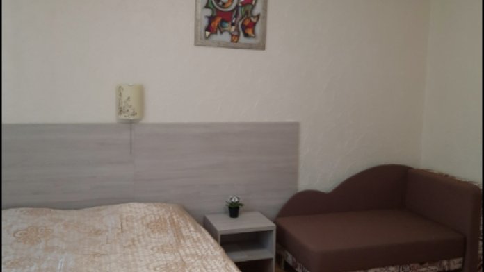В комнате двухспальная кровать (основное спальное место), два одно спальных дивана(дополнительные места).