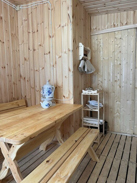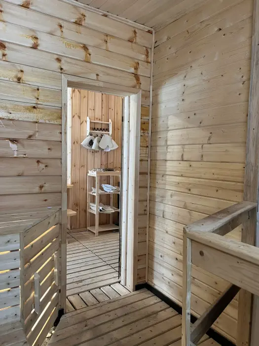 - Баня на дровах до 4 человек, есть душевая с обливным ведром и туалет (веник, шапочки, чистые простыни, эфирные масла и чай входят в стоимость).