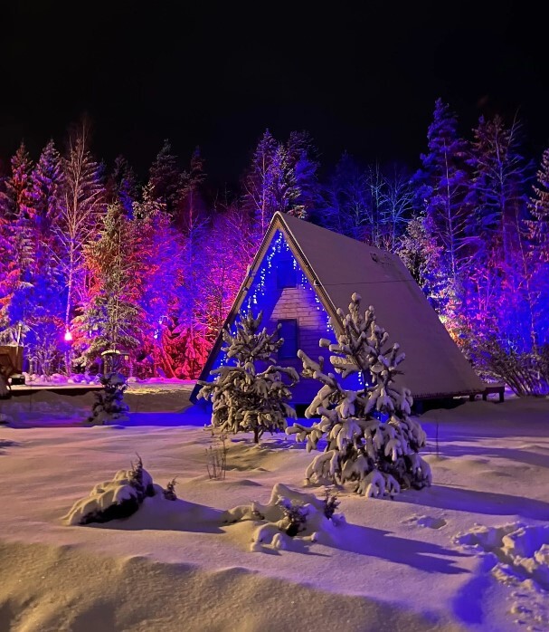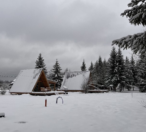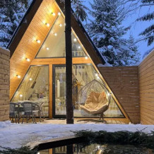 - комфортабельные треугольные дома-афреймы для размещения 2-6 гостей;