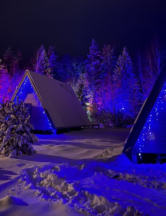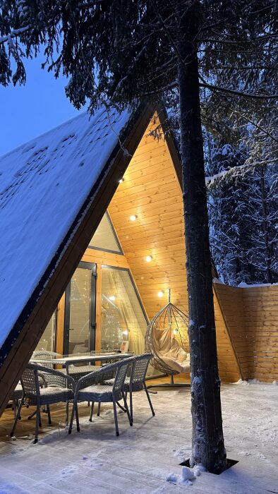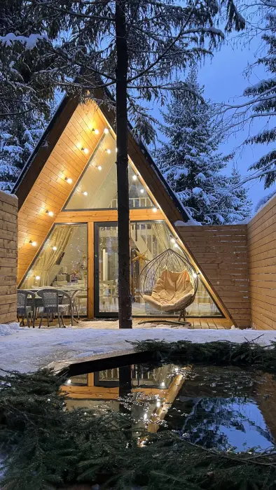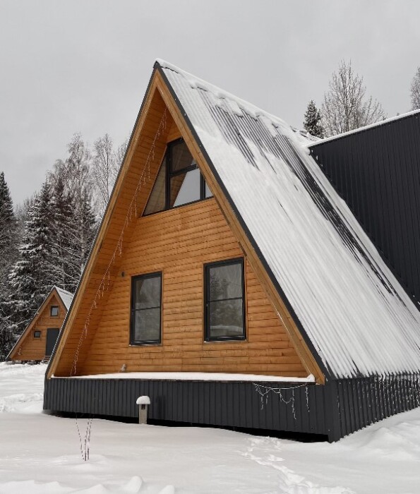 - уютные треугольные дома-афреймы для размещения 2-4 гостей;