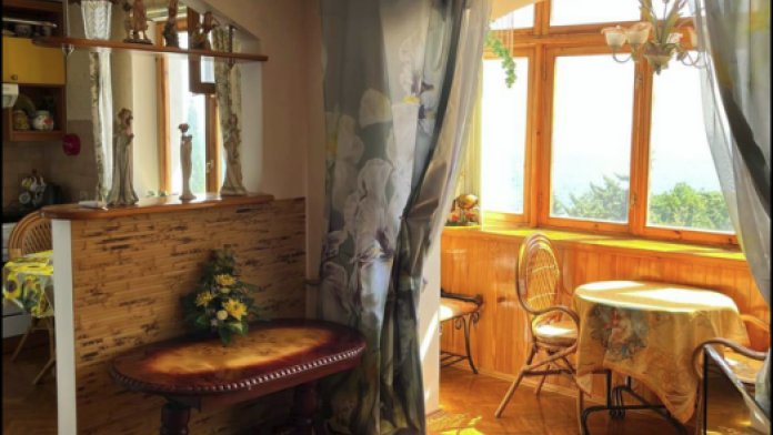 К дому имеется не большое подъем, из окна вид на море и гору Медведь (Аю-Даг).