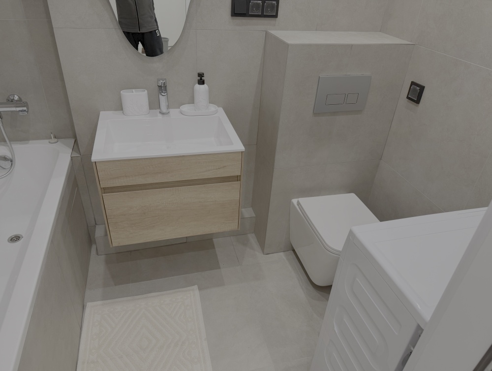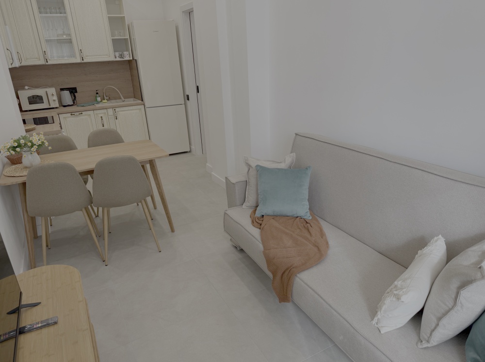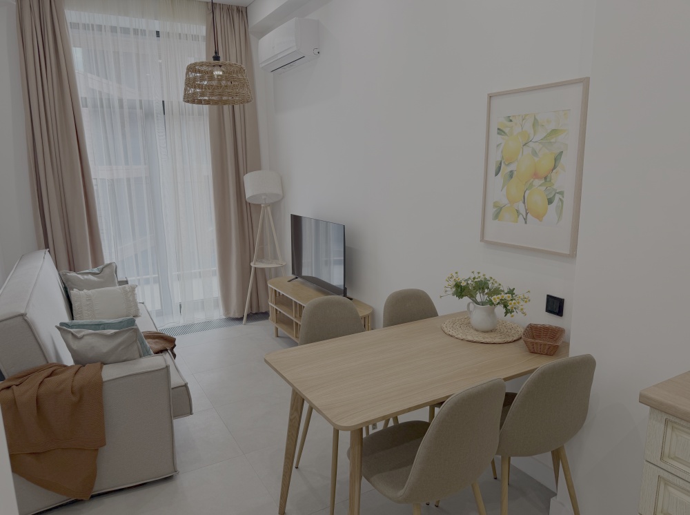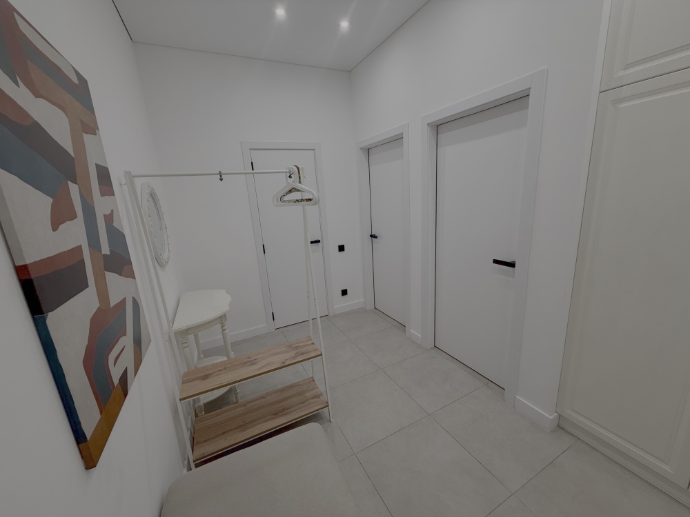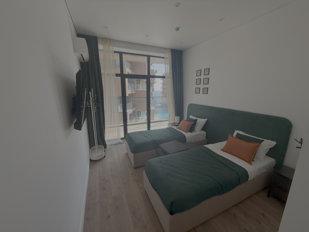 Каждый уголок квартиры оснащён большими экранами Smart TV, позволяющими удобно просматривать любимые фильмы и сериалы прямо из постели или сидя на кухне. Современный дизайн интерьера дополняют стильный санузел с удобной ванной и душем, стиральной машиной, качественной сантехникой и красивым зеркалом.