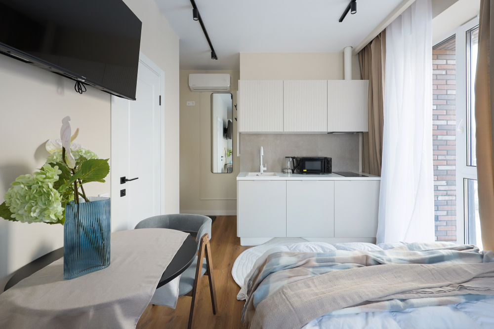 Чистая, уютная и новая студия, откуда не хочется уезжать. Интерьер продуман до мелочей.