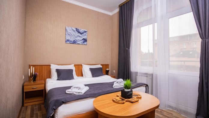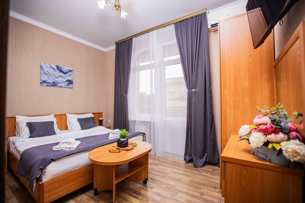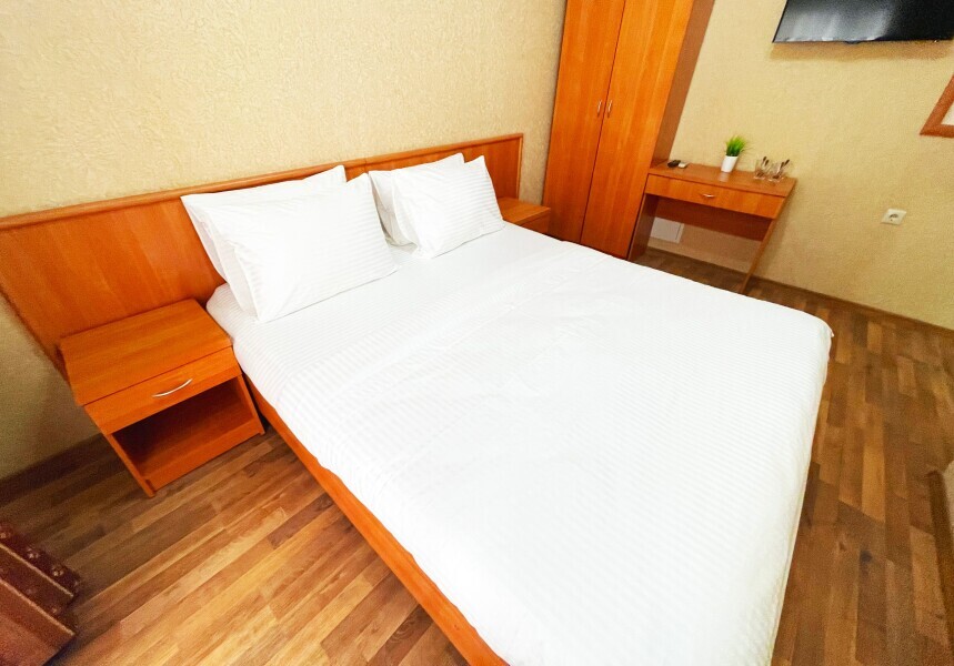 Уютный номер площадью 15м2 - идеальное пространство для отдыха. Вас ждёт удобная двуспальная кровать, где можно по‑настоящему расслабиться после насыщенного дня. В номере есть всё необходимое: телевизор для вечерних просмотров, кондиционер для комфортного микроклимата и фен для утренних сборов. Особая прелесть - собственный балкон, где приятно выпить кофе на рассвете или подышать вечерним воздухом.