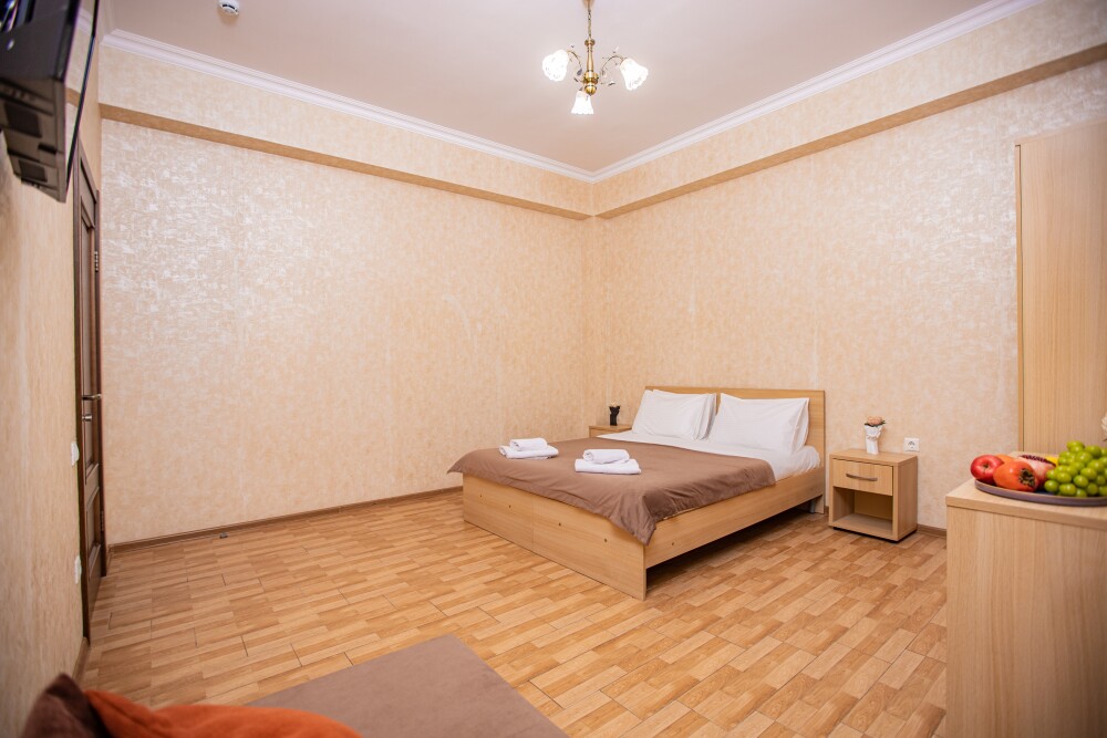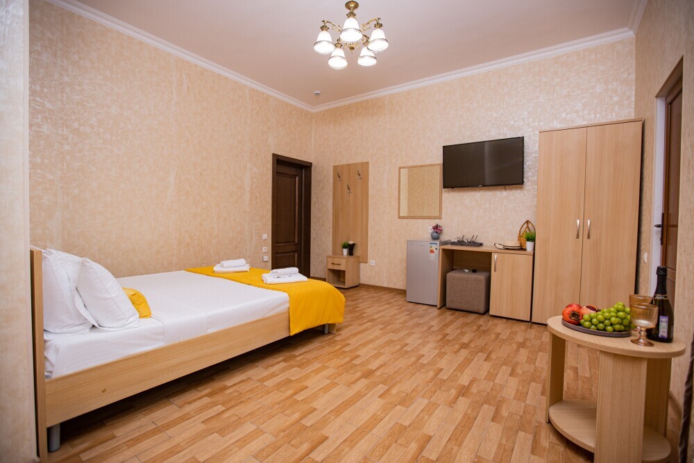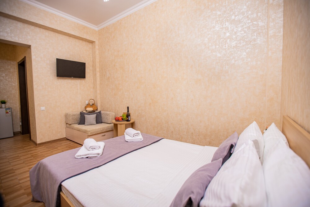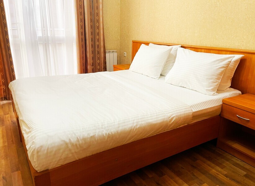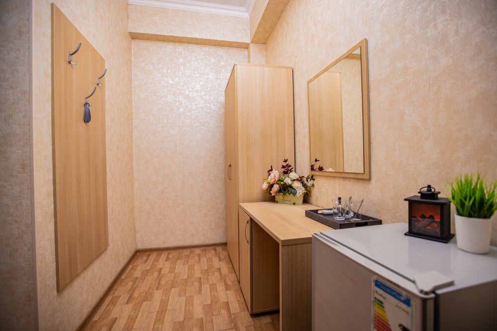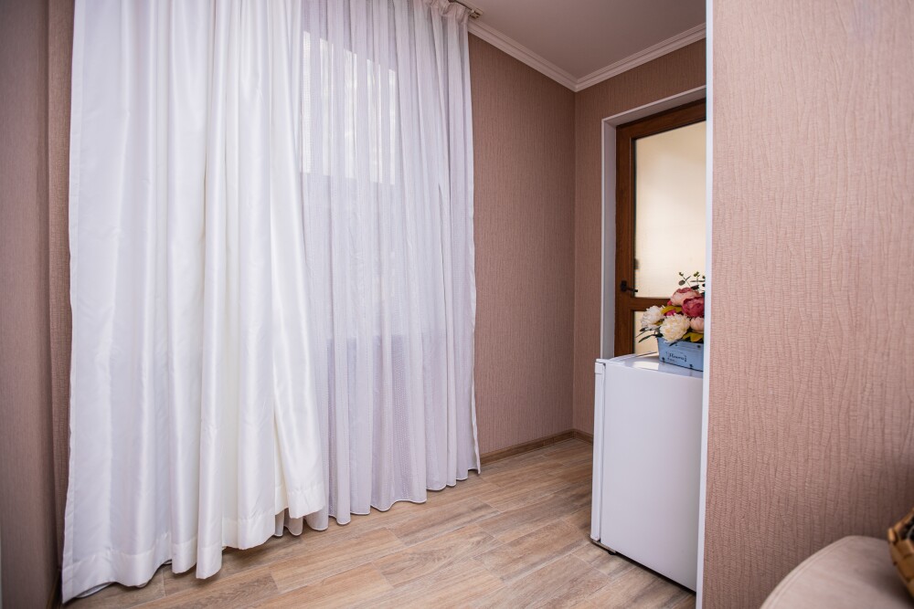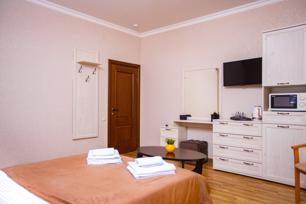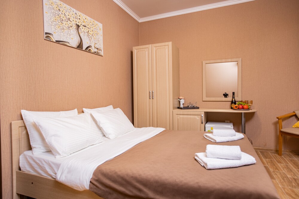 Номер категории Стандарт 15м2, где каждая деталь создана для Вашего удобства. Двуспальная кровать приглашает к безмятежному сну, а одноместная софа легко превращается в дополнительное спальное место. Кондиционер поддерживает приятную прохладу, телевизор развлекает по вечерам, а балкон открывает пространство для утренних ритуалов или вечерних бесед. Всё необходимое - от фена до мелочей - уже подготовлено, чтобы Вы могли сосредоточиться на главном: наслаждении временем с близкими.
