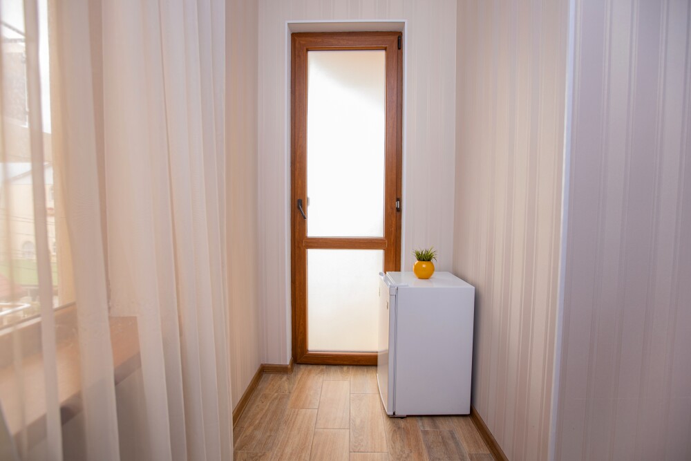 Стандартный номер площадью 18м2, сочетает функциональность и уютный минимализм. В распоряжении гостей - удобная двуспальная кровать и дополнительное спальное место. Современные удобства включают кондиционер для комфортного микроклимата, телевизор для досуга и фен для утренних сборов. Особая деталь - собственный балкон, где можно отдохнуть с чашечкой кофе или насладиться вечерней прохладой. Всё продумано для спокойного отдыха без лишних деталей.