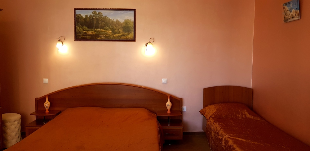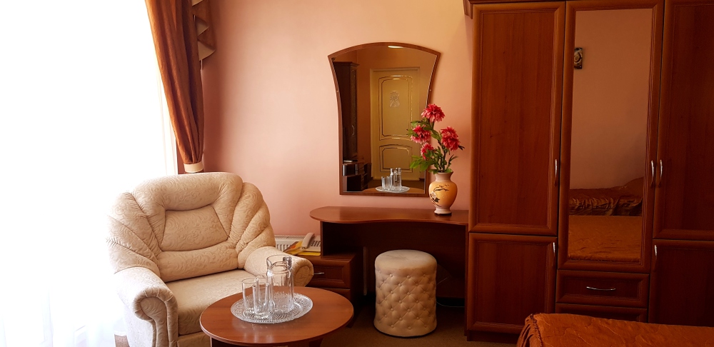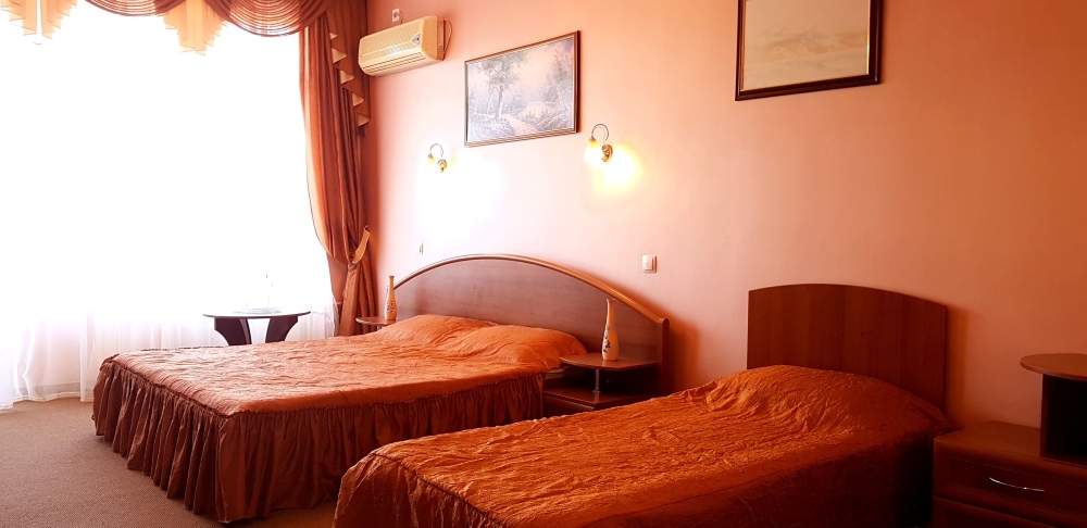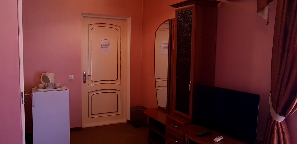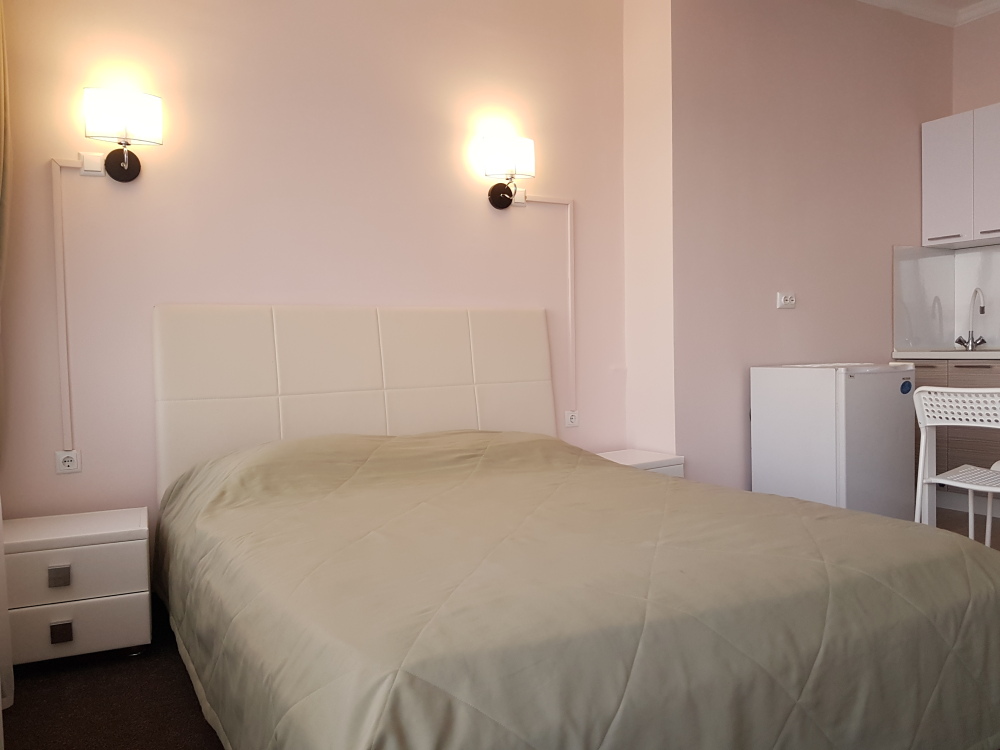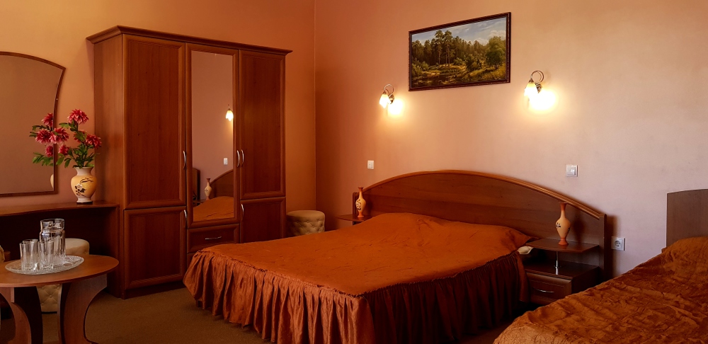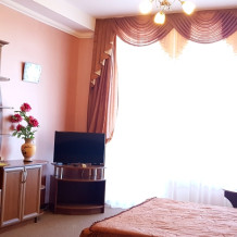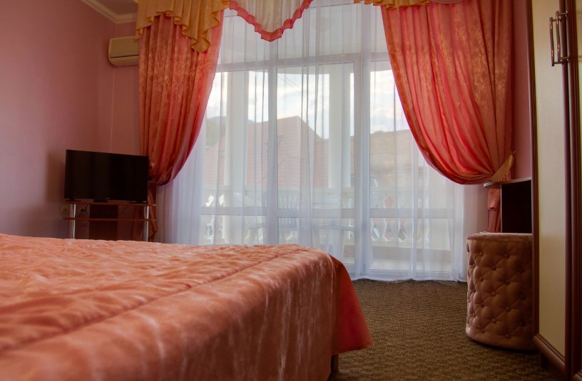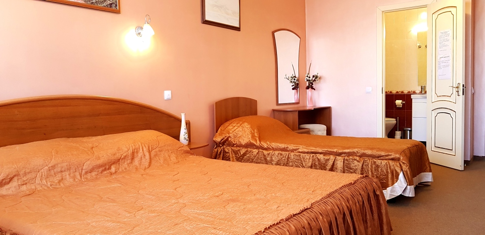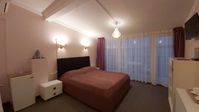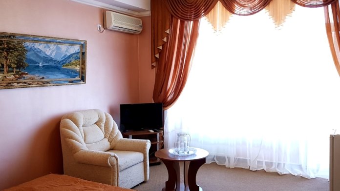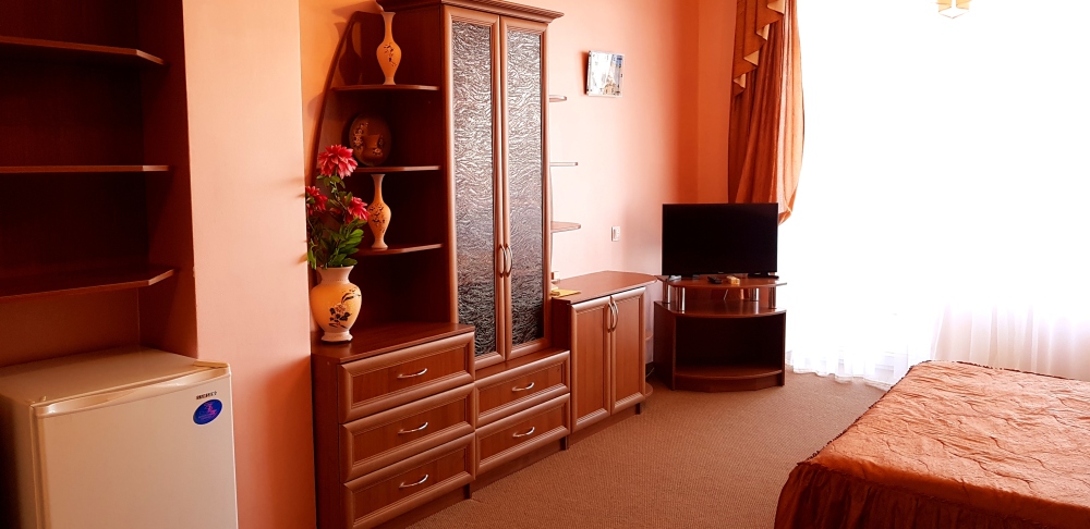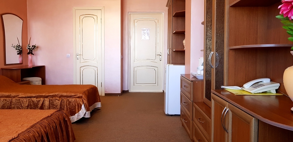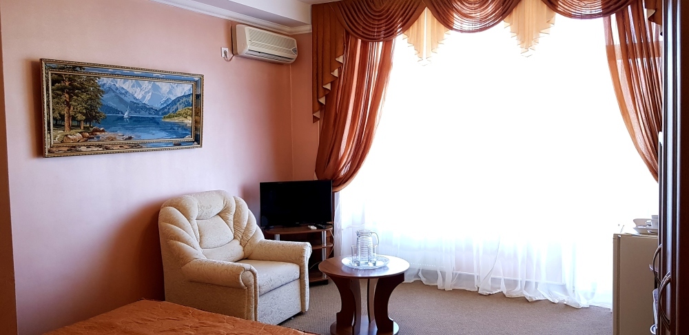 Наши номера просторные, имеют балкон (террасу или лоджию). Включают телевизор, кондиционер, холодильник. Кроме того, мы предоставляем для наших отдыхающих фильтрованную питьевую воду, чайник, необходимую посуду, фен. Ванные комнаты обустроены современной сантехникой. Всегда есть горячая и холодная вода. В номерах, категории люкс имеются ванна и биде.
