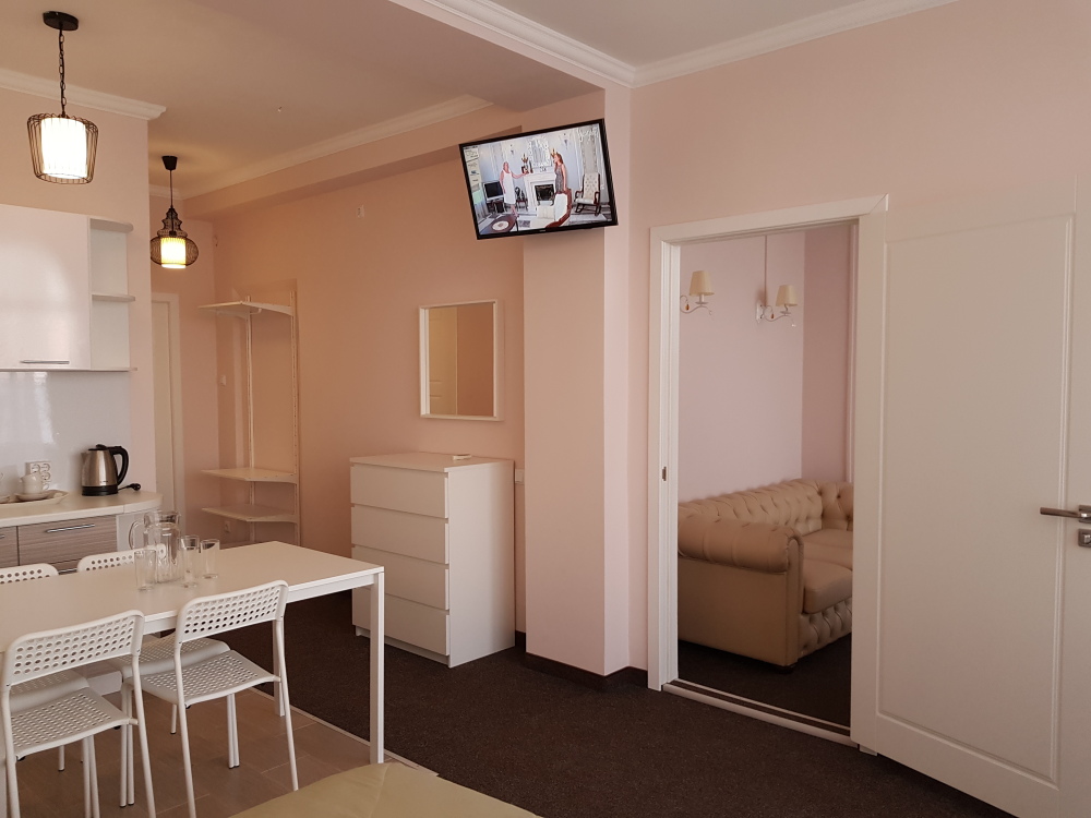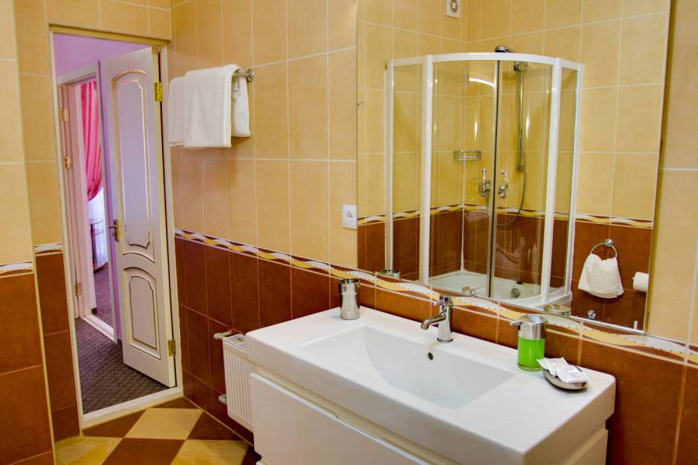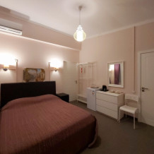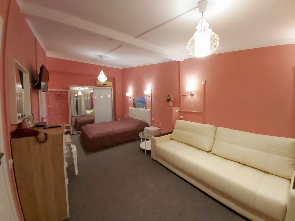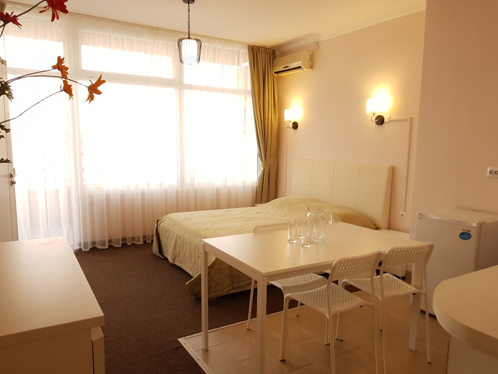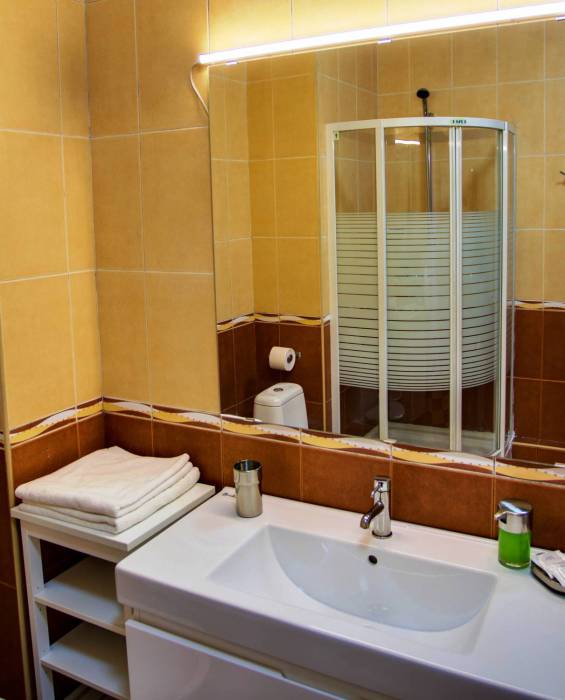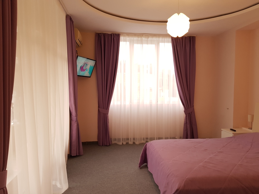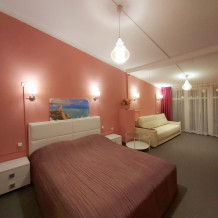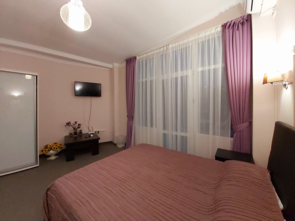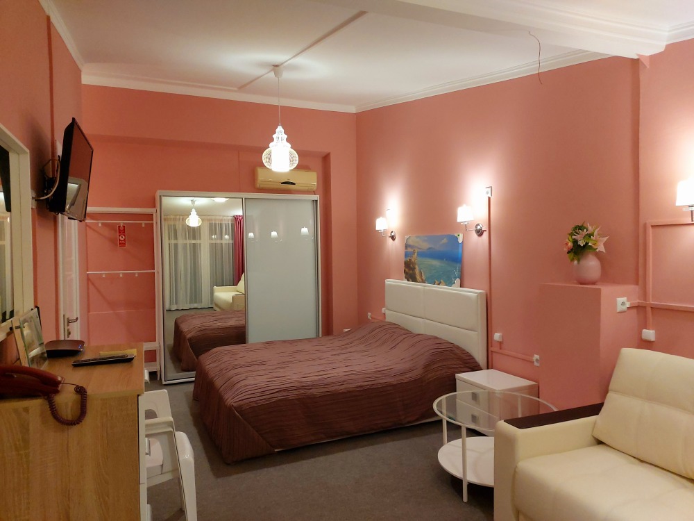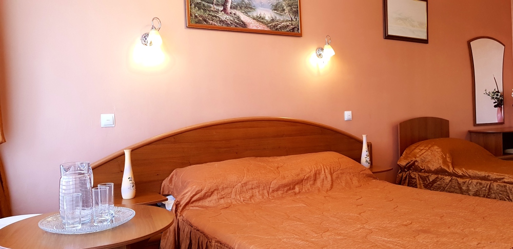 Наши номера просторные, имеют балкон (террасу или лоджию). Включают телевизор, кондиционер, холодильник. Кроме того, мы предоставляем для наших отдыхающих фильтрованную питьевую воду, чайник, необходимую посуду, фен. Ванные комнаты обустроены современной сантехникой. Всегда есть горячая и холодная вода. В номерах, категории люкс имеются ванна и биде.