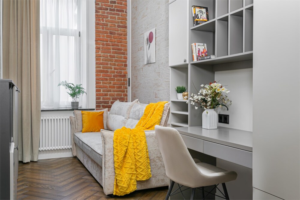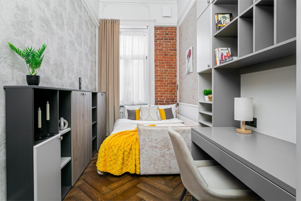 - Удобная двуспальная кровать 140 см, двуспальный диван-кровать и односпальная кровать 100 см в комнатах