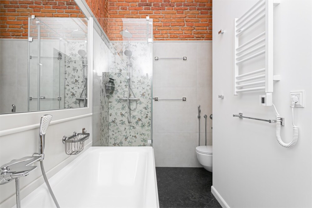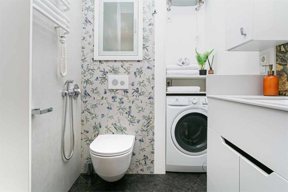 - Раздельный санузел: туалет, ванная с душем и стиральной машиной