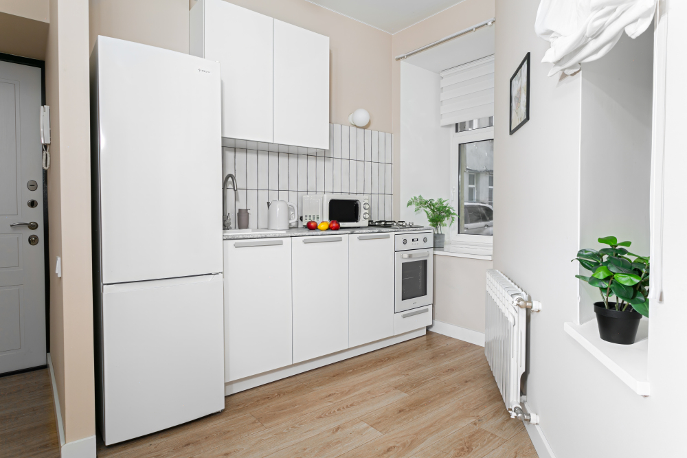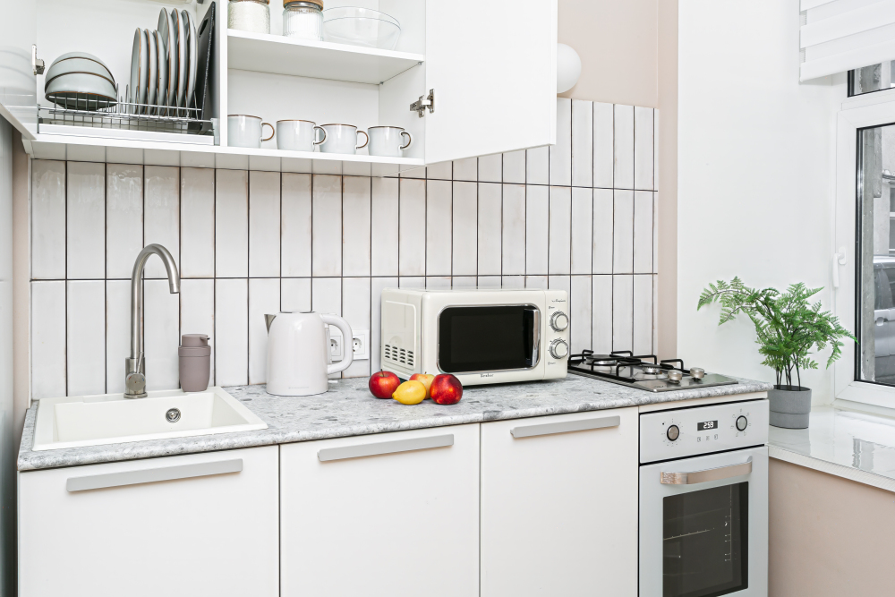 - Кухня: газовая плита, чайник, холодильник, духовка, микроволновка