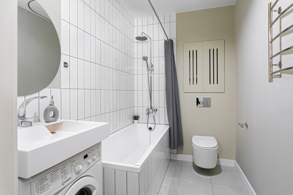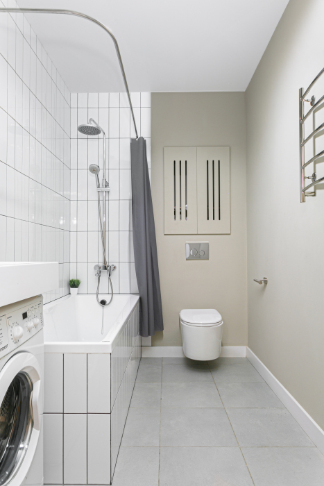 - Совмещенный санузел: душ с ванной и туалет
