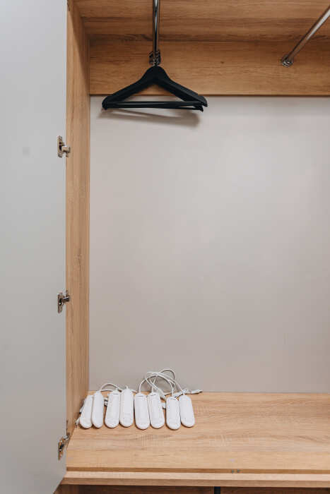 Телевизор, фен, утюг и гладильная доска, сушилка.