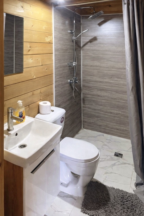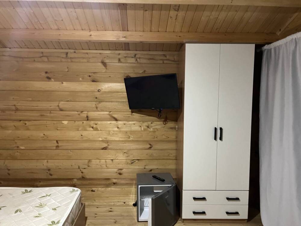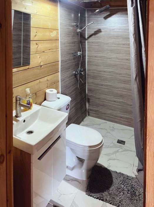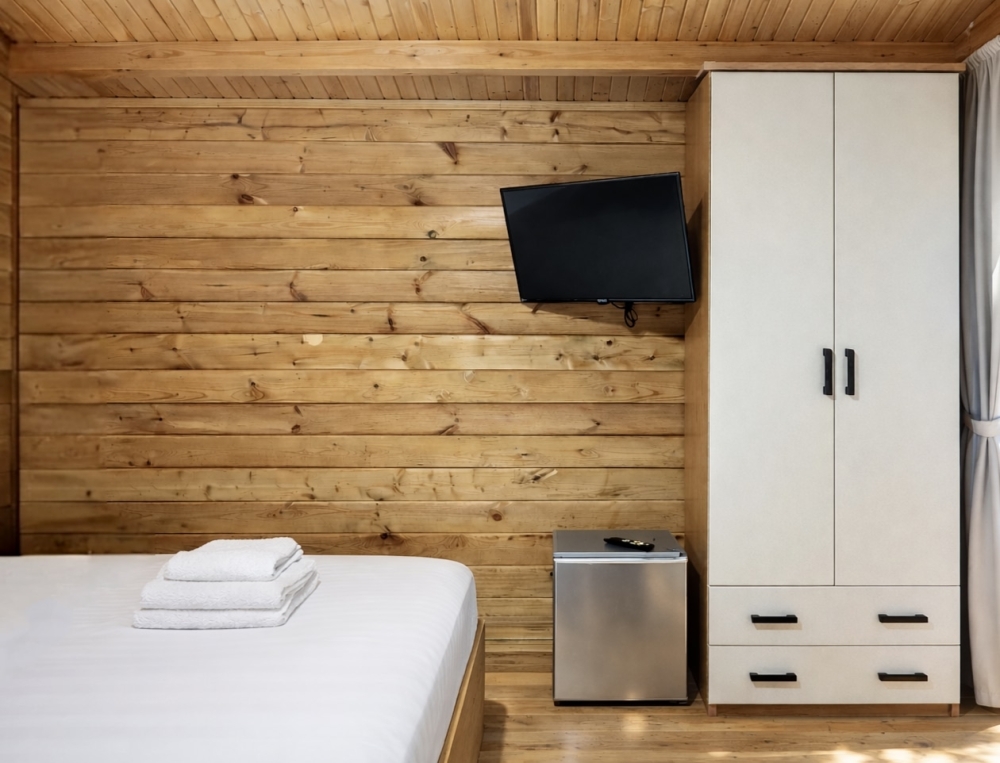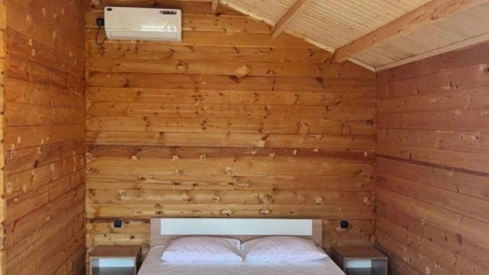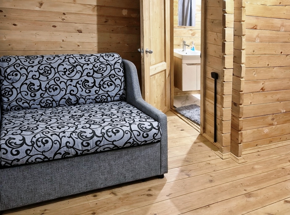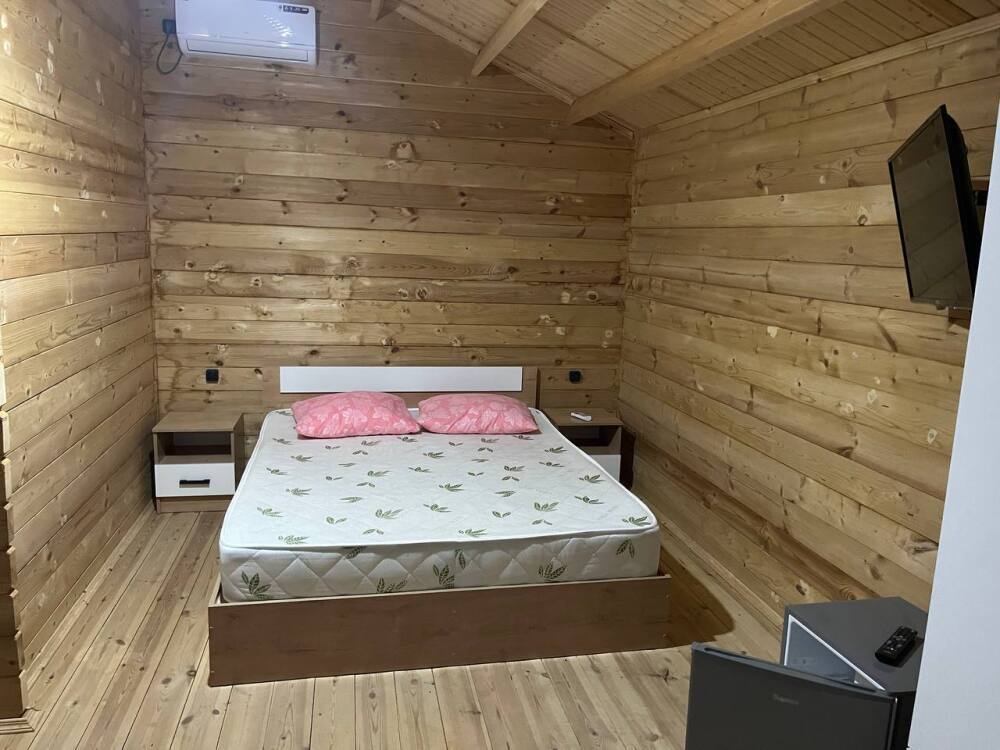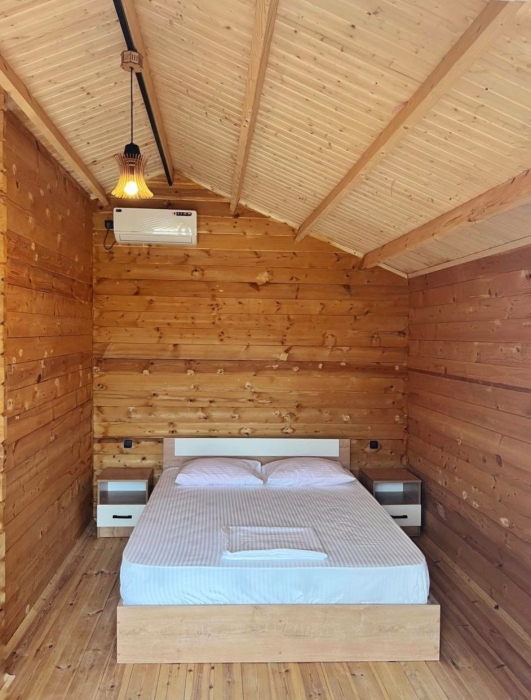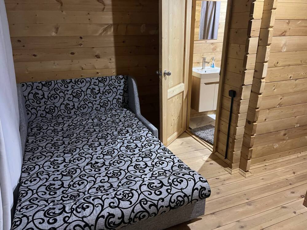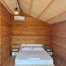 В каждом домике двуспальная кровать и односпальная/либо диван.