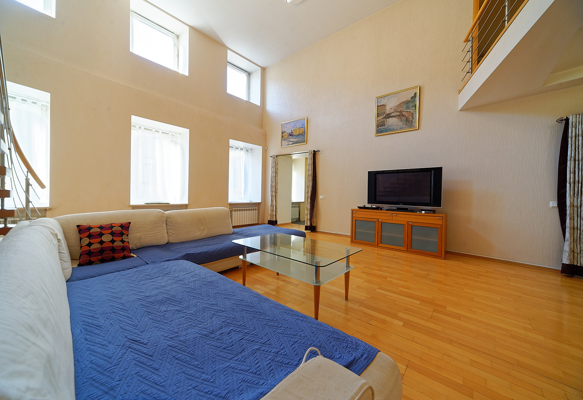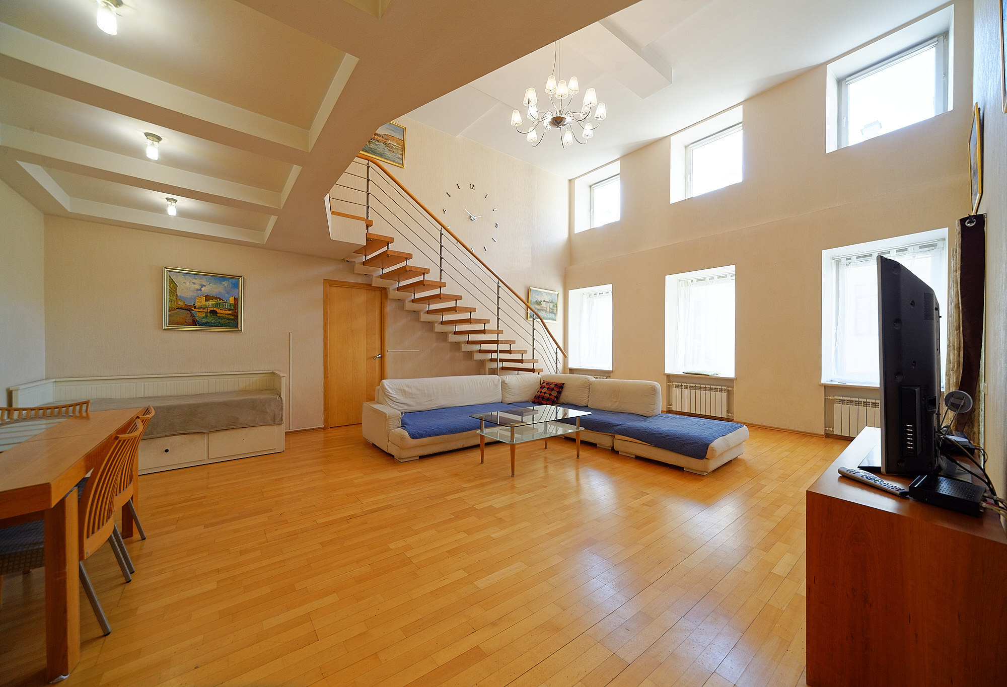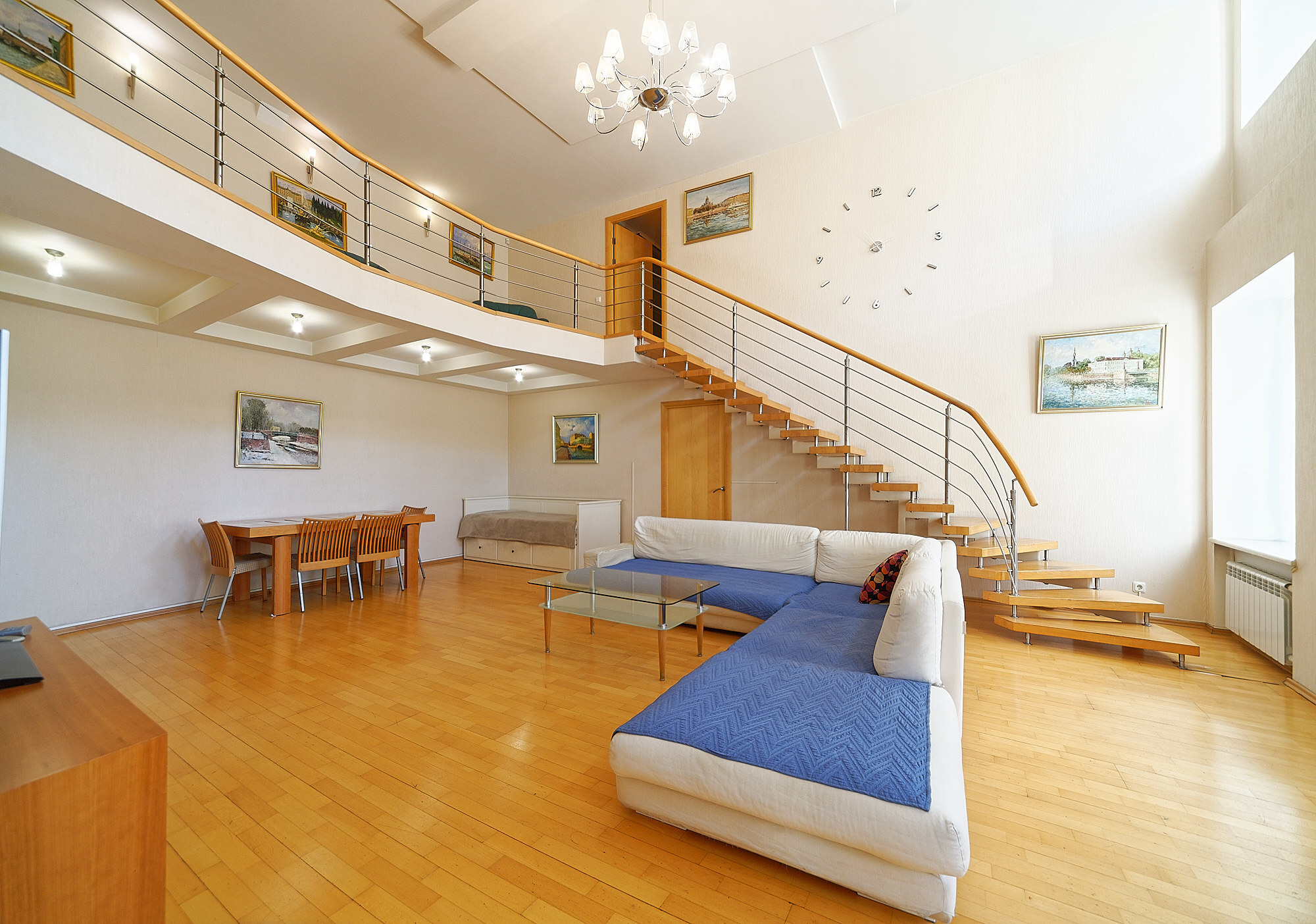 Лофт Европа: Просторный двухуровневый лофт 170 м² с большой светлой гостиной в самом сердце Петербурга.