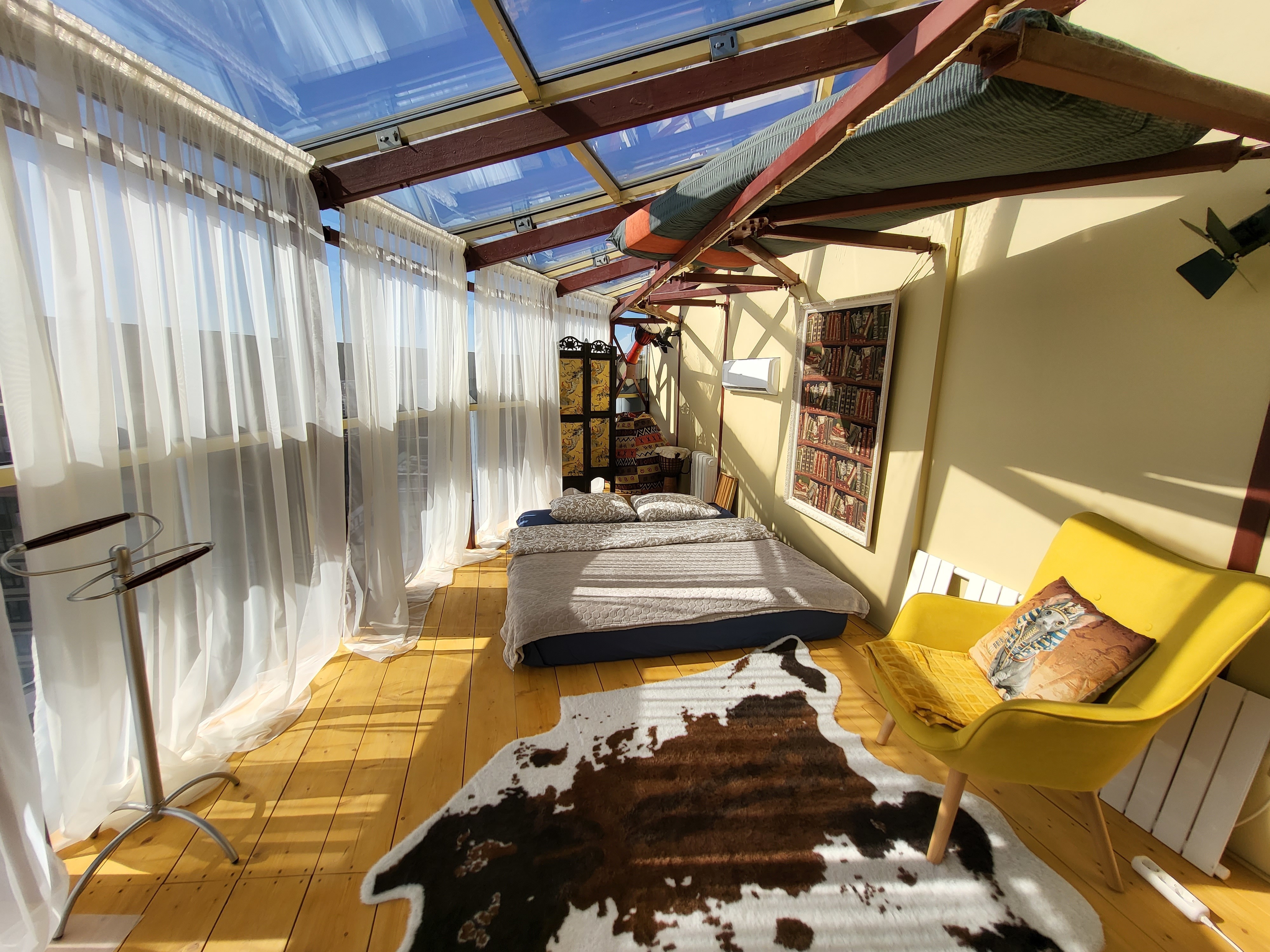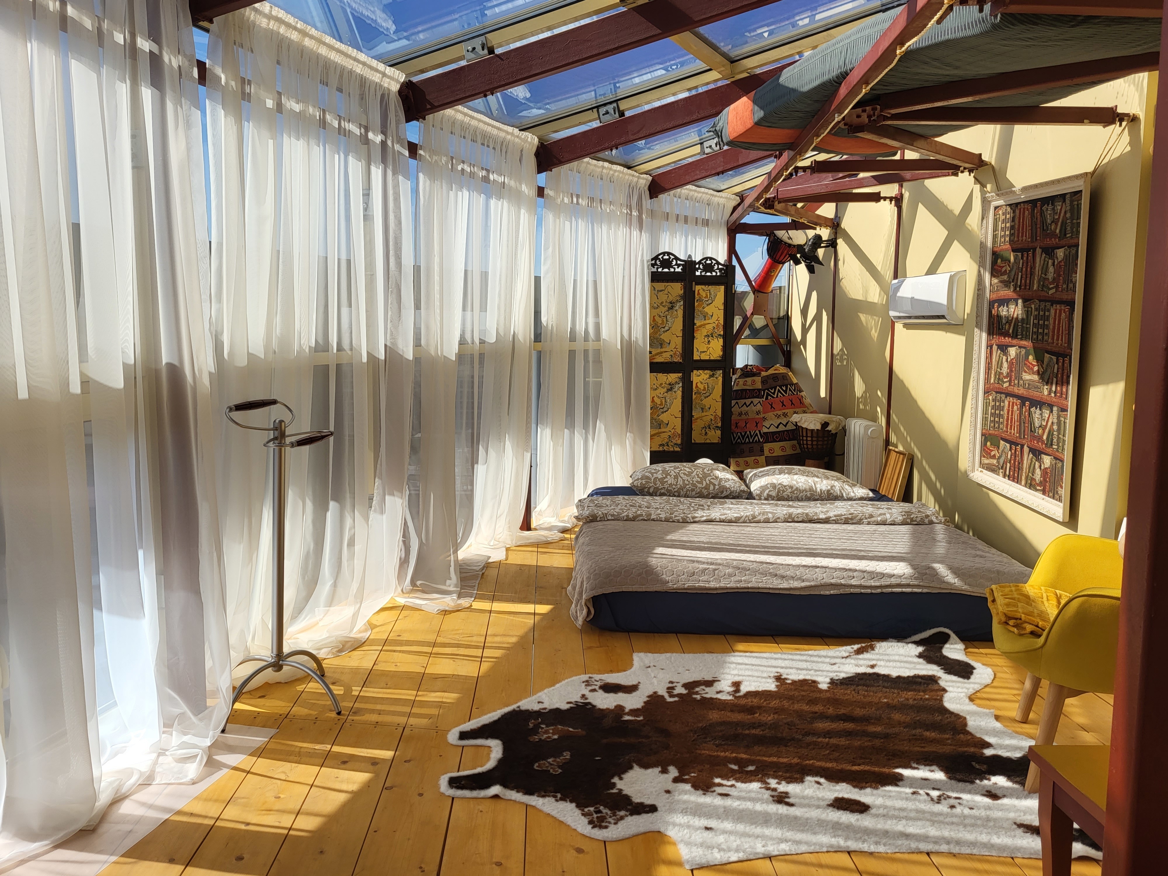 - Спальная зона с прозрачной крышей для созерцания звёзд;