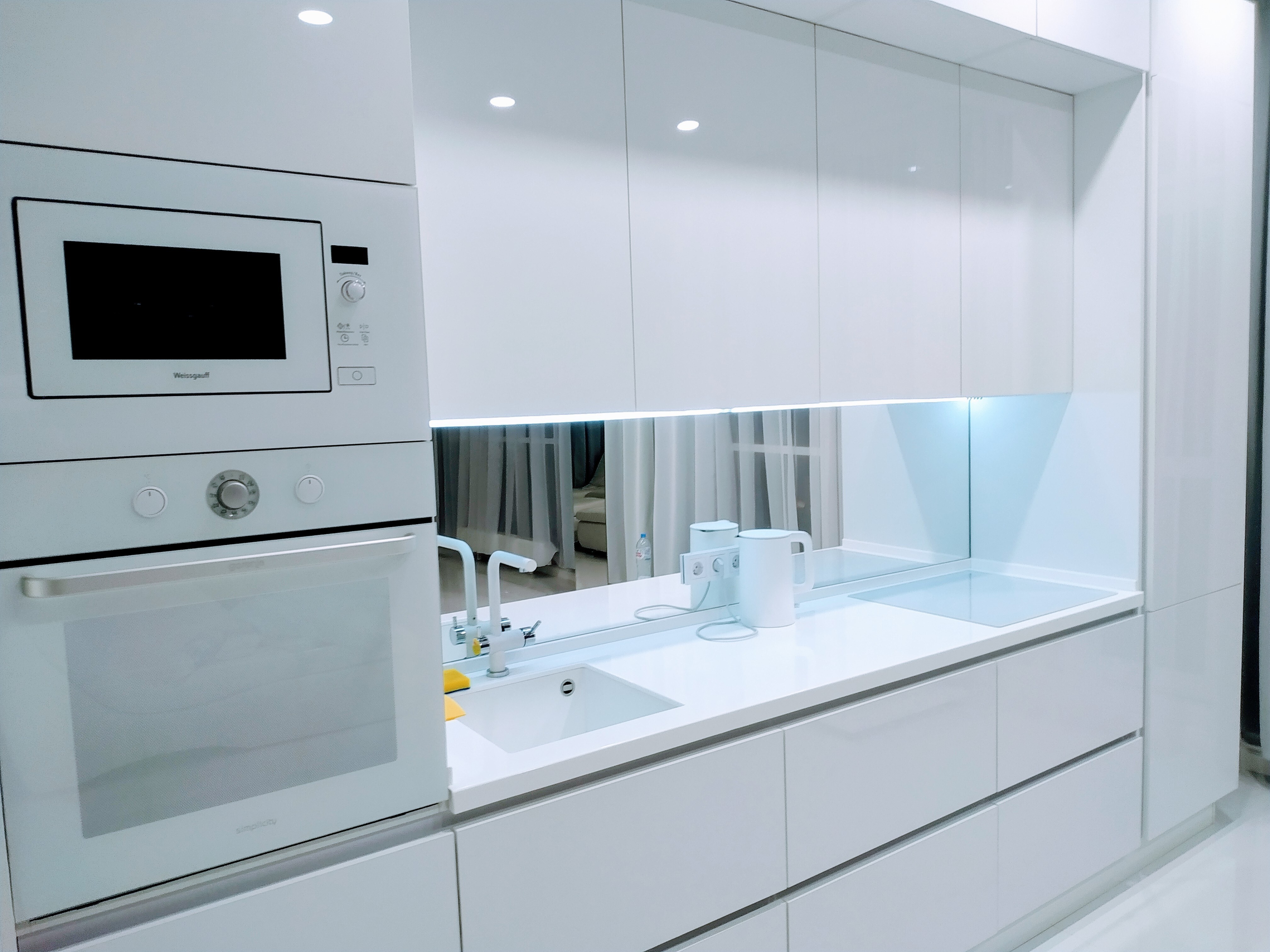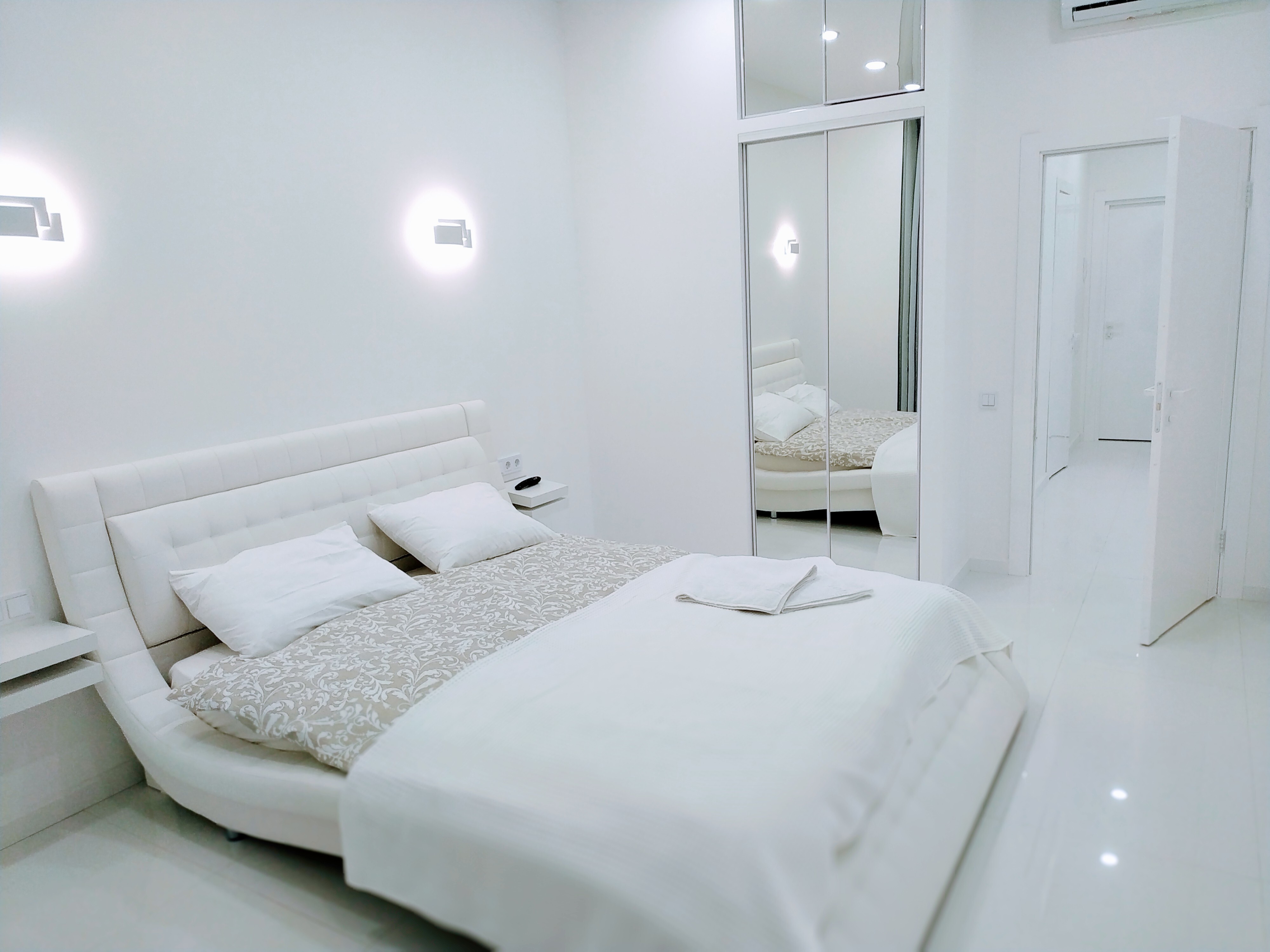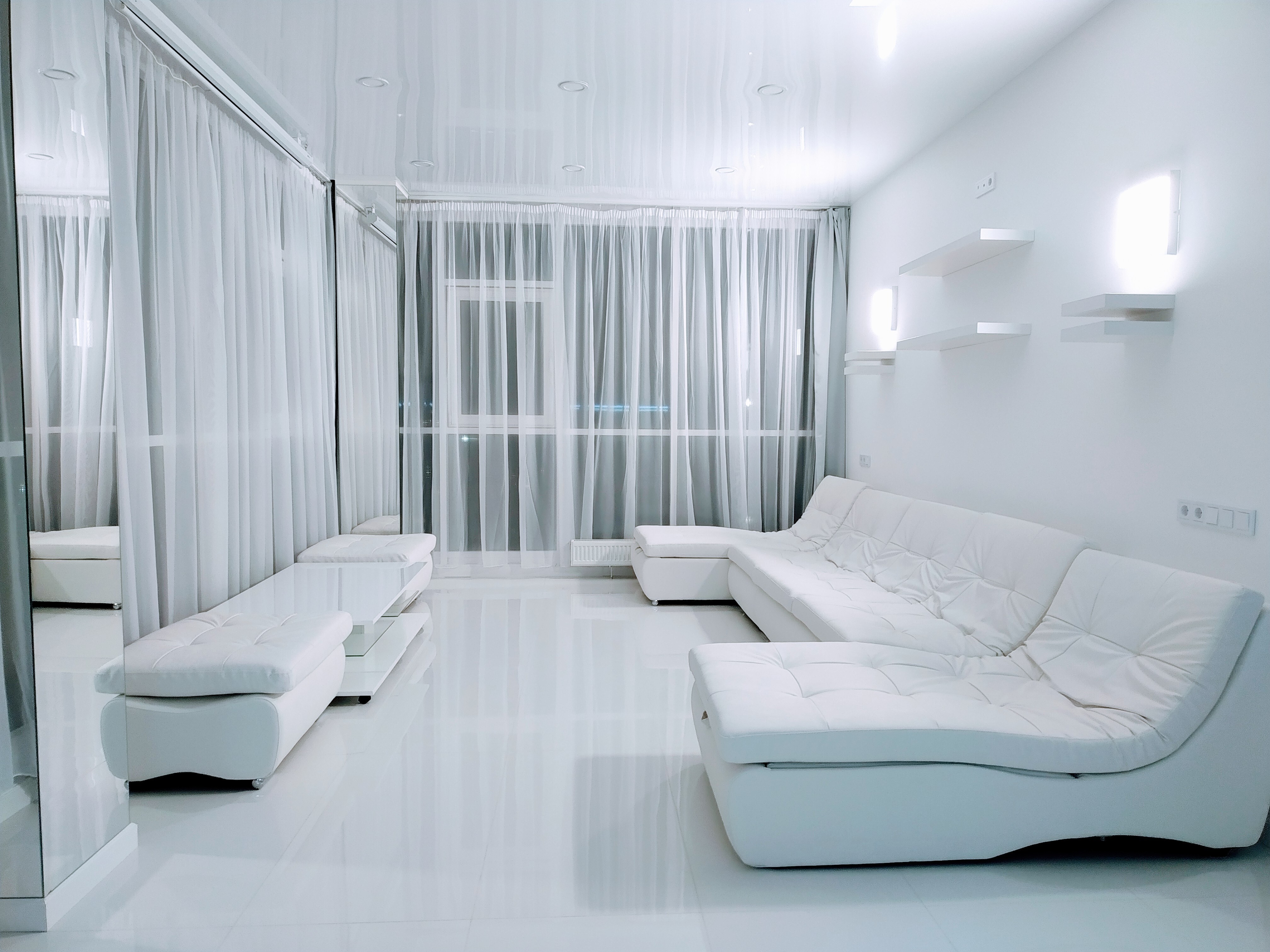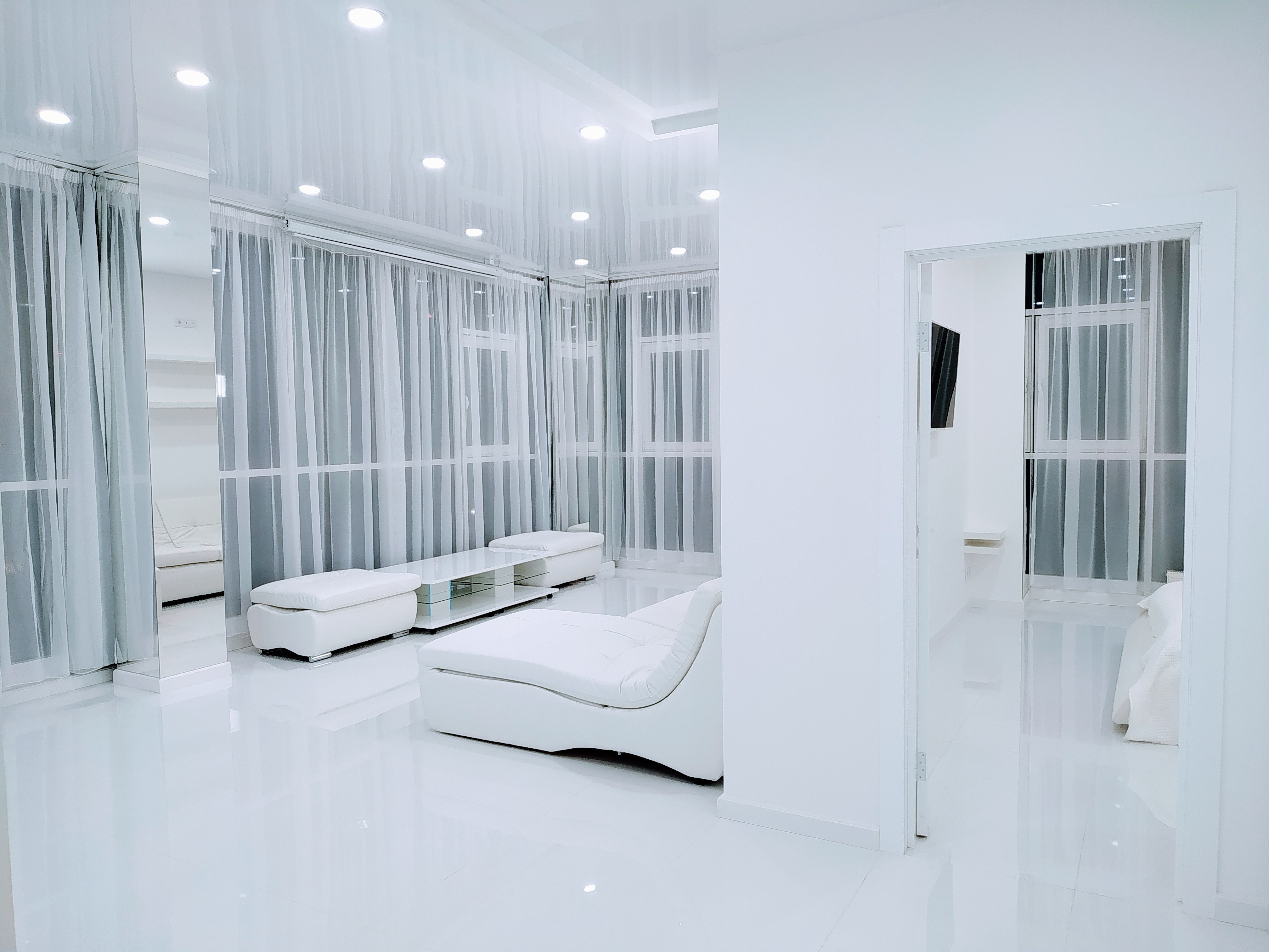 - Белоснежный интерьер с панорамным видом и балконом;