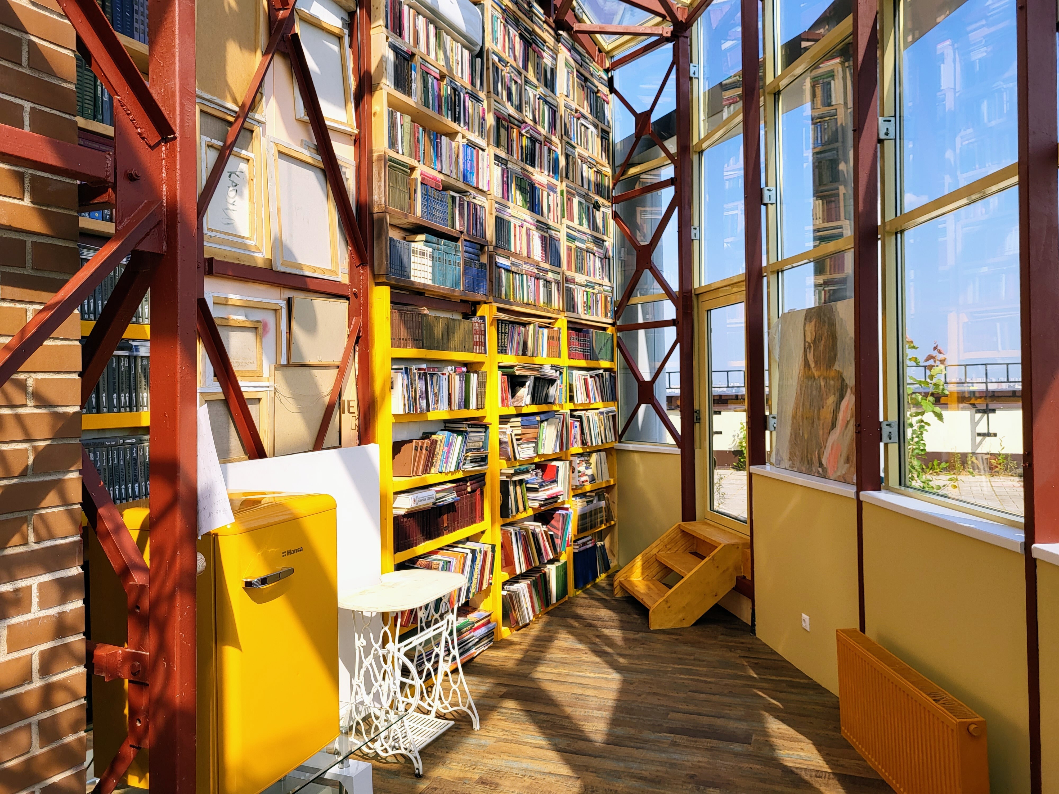 - Уютный дизайнерский мезонин с библиотекой. Все книги доступны для чтения, включая на свежем воздухе, на террасе;
