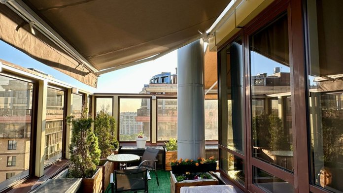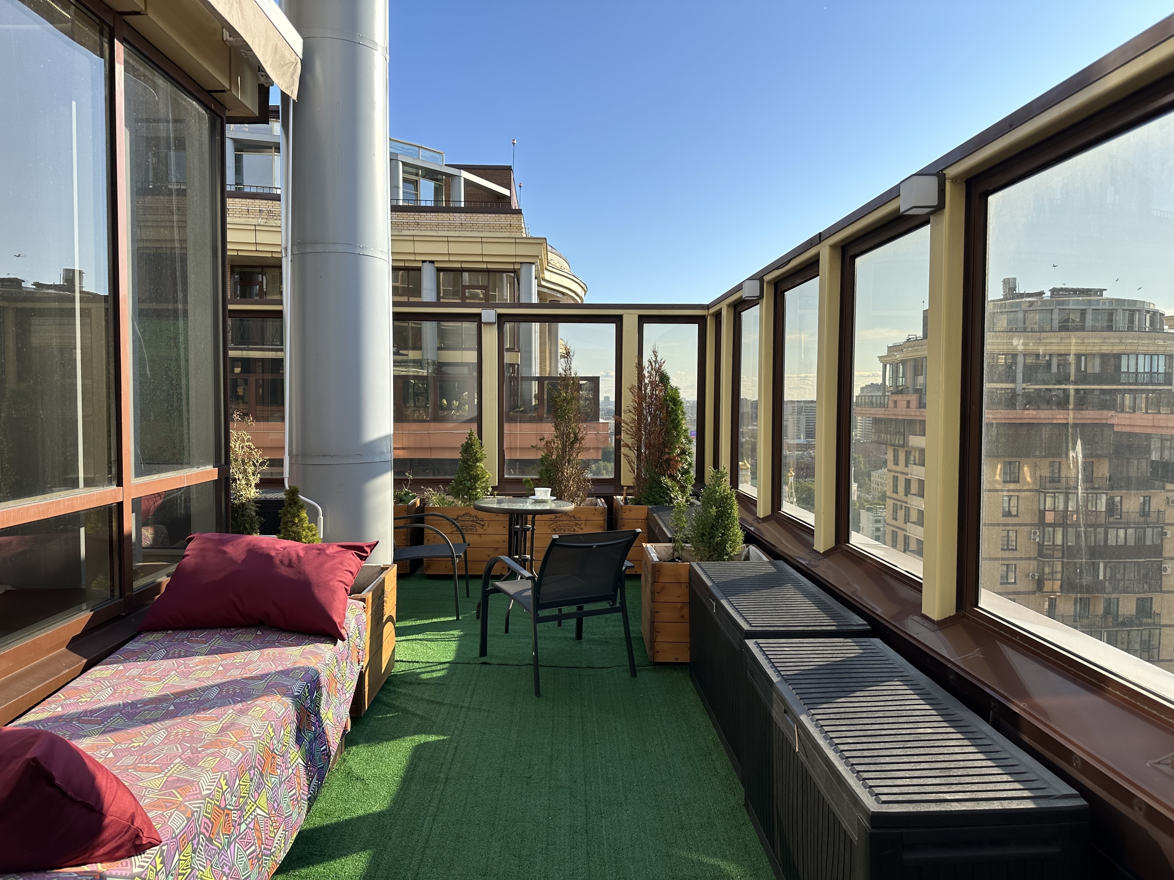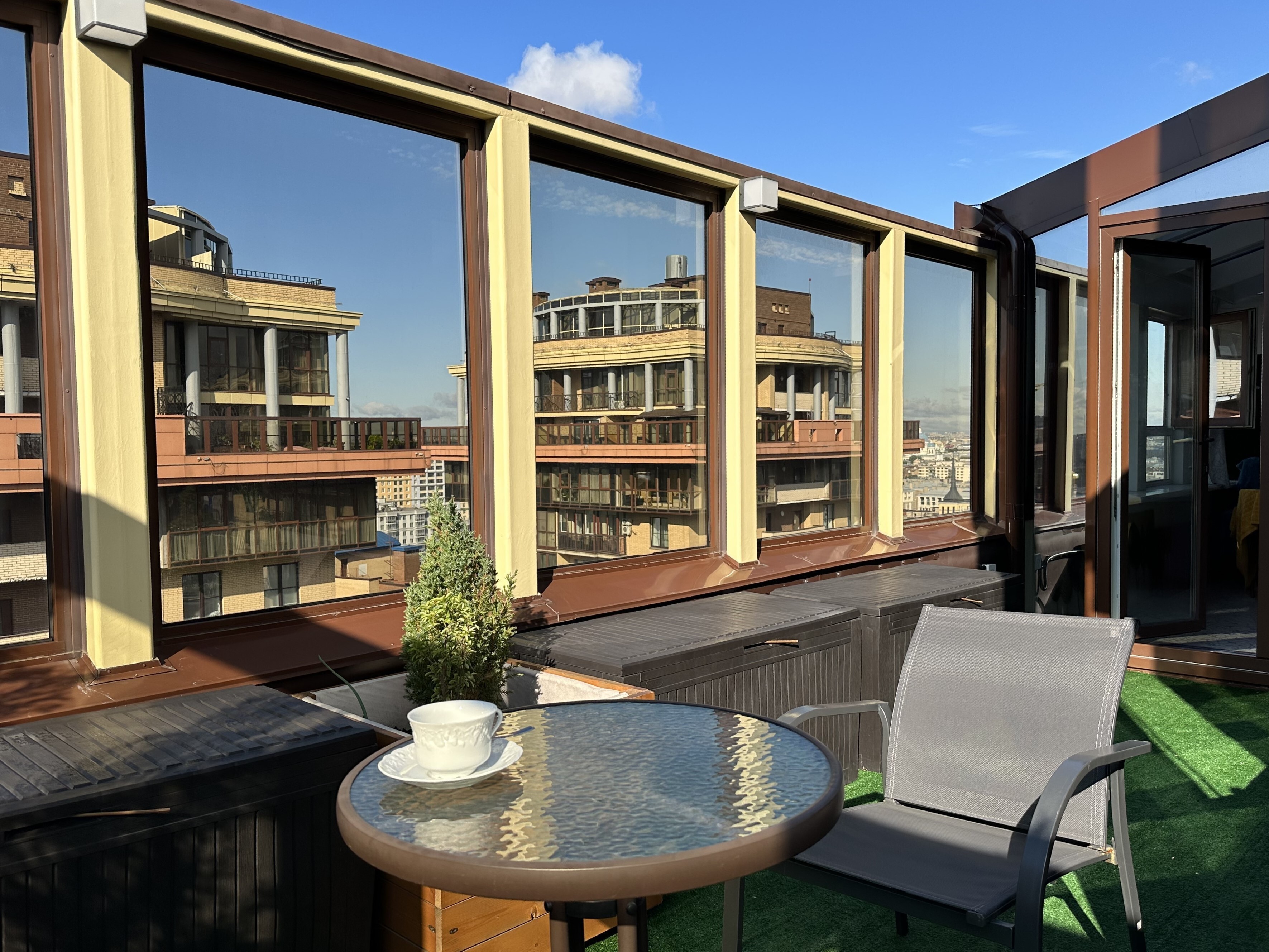 Городская терраса (110 м²) с зимним садом и панорамным видом на Санкт-Петербург.