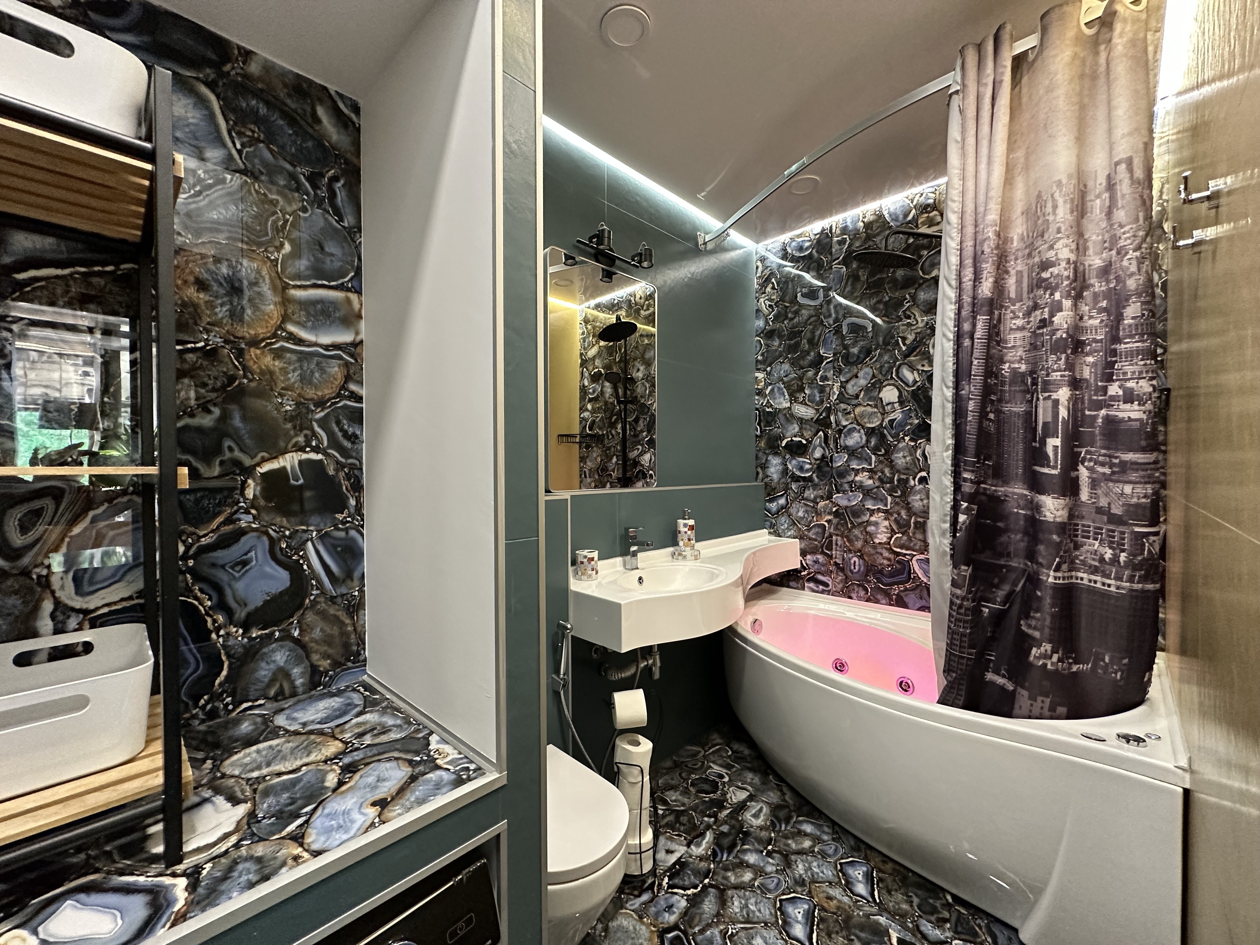 - Полностью оборудованная кухня (фильтры для воды, посудомоечная машина, духовой шкаф, микроволновка);