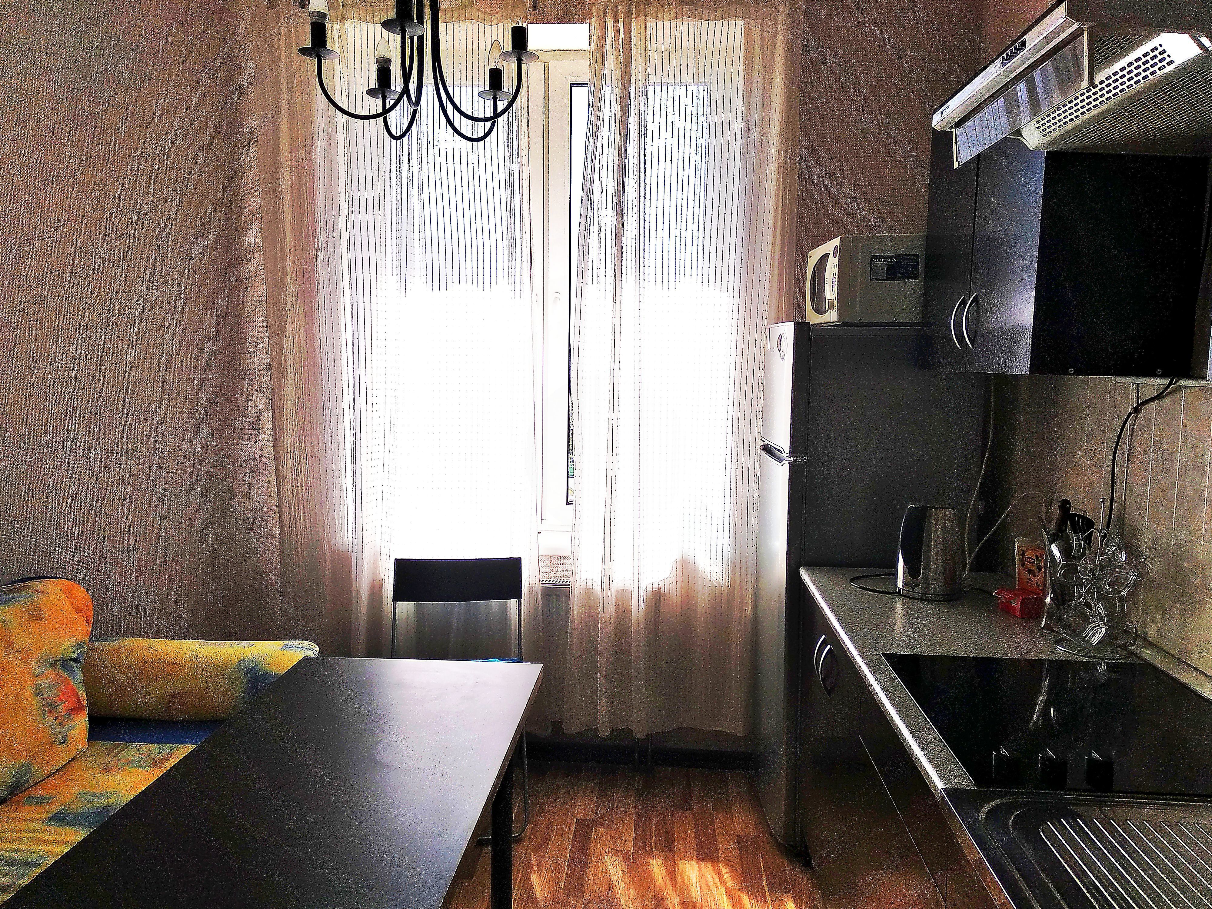 - Полностью оборудованная кухня: посуда, холодильник, плита, микроволновка;