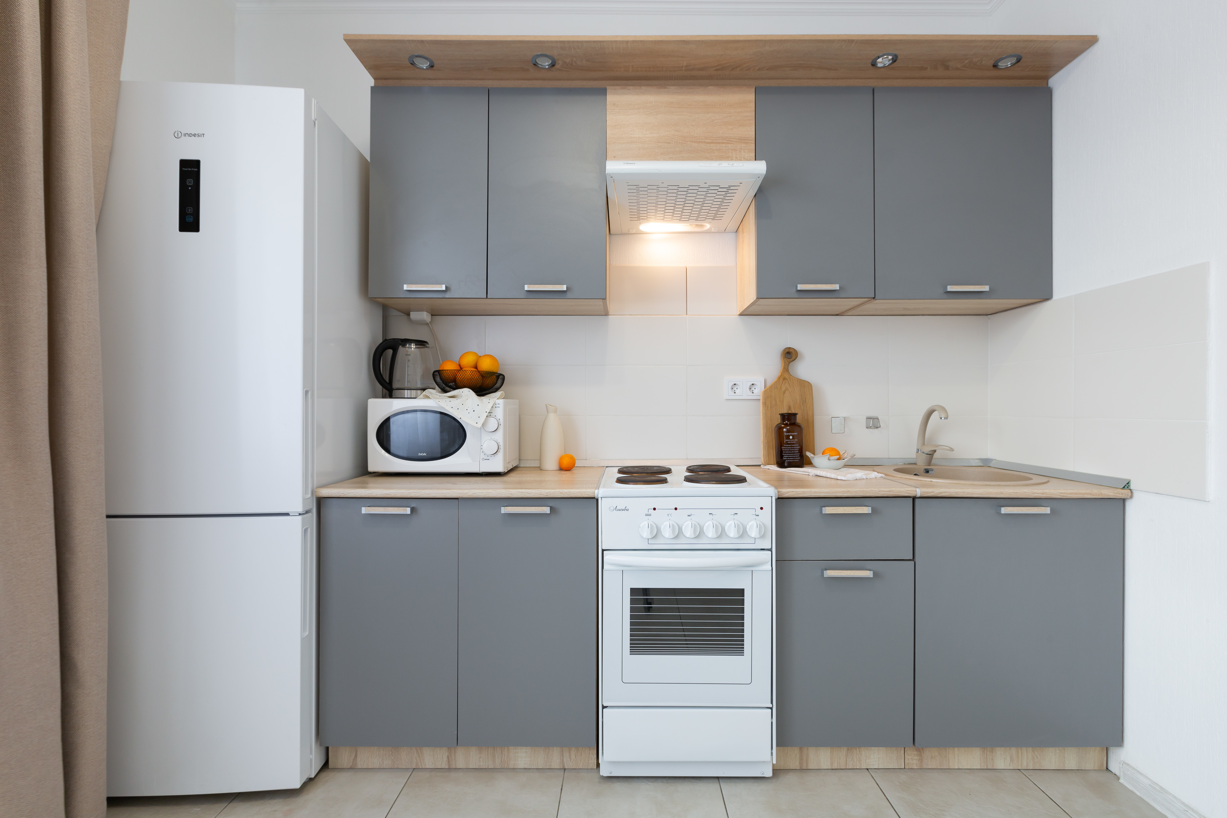 - плита, микроволновка, духовка, вытяжка, чайник, холодильник;