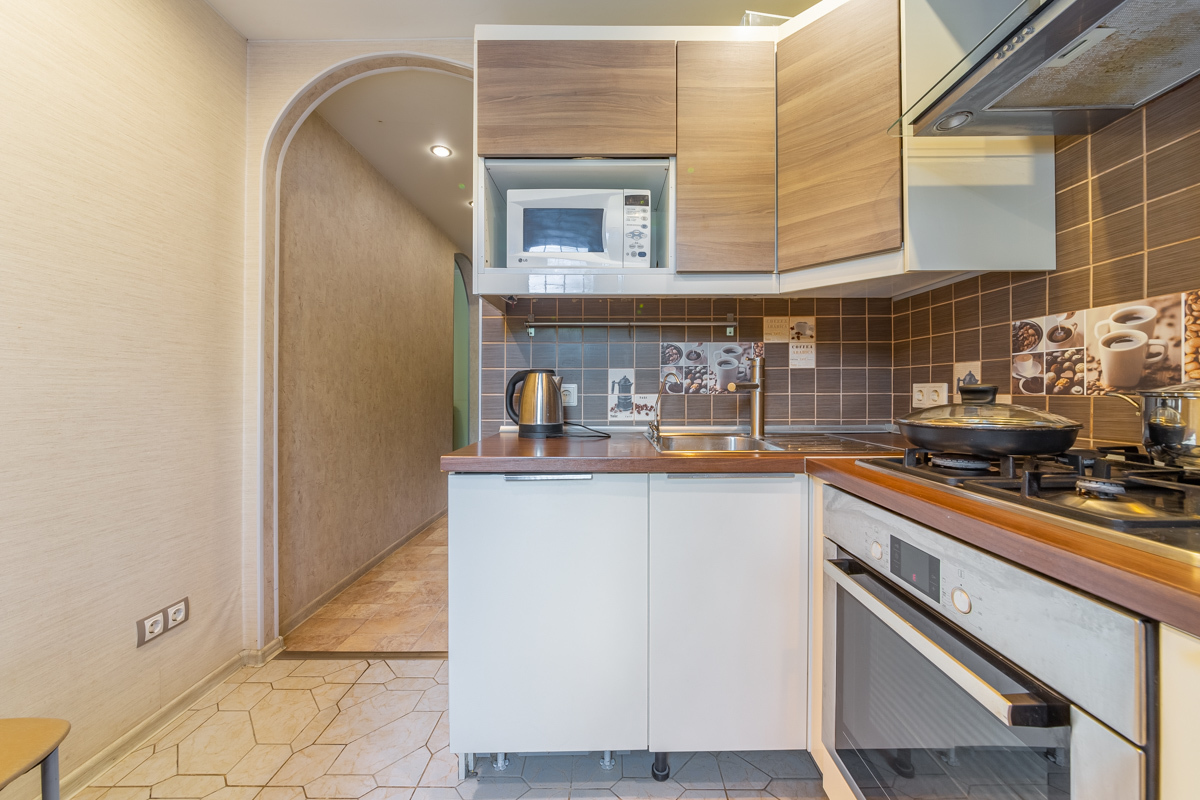 - плита, микроволновка, духовка, вытяжка, посудомоечная машина, чайник, холодильник;