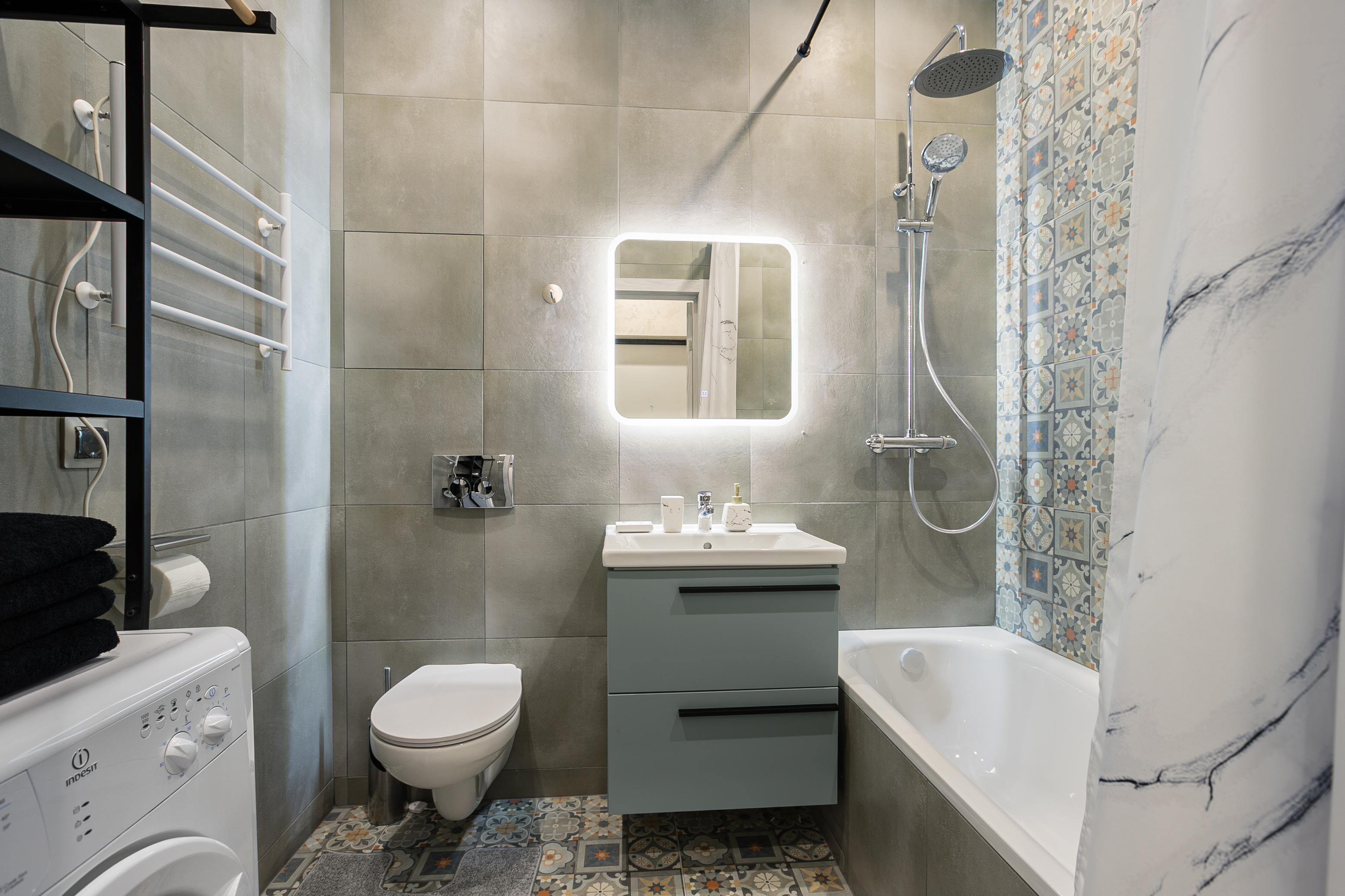- душ, стиральная машина, фен;