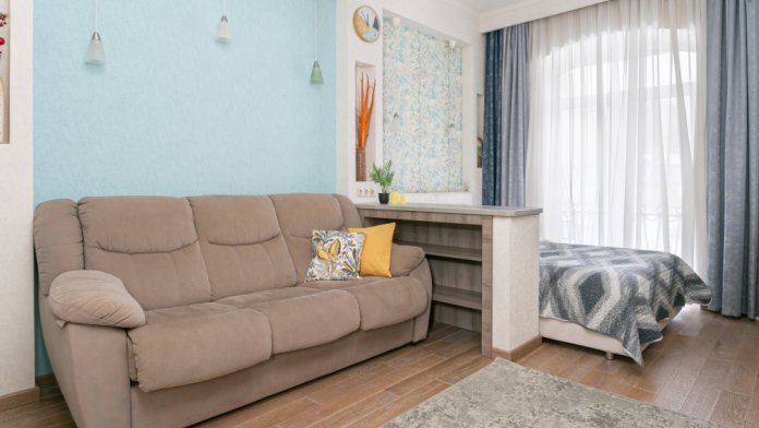 - Удобная двуспальная кровать 140 см и раскладной диван