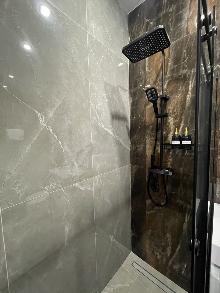 Ванная комната: душевая кабина с тропическим душем и 4-мя видами леек, стиральная машинка с гелем для стирки, большой водонагреватель; фен, полный комплект полотенец (банное, для рук, для ног), необходимые жидкости (крем-мыло для рук, гель для душа, шампунь).