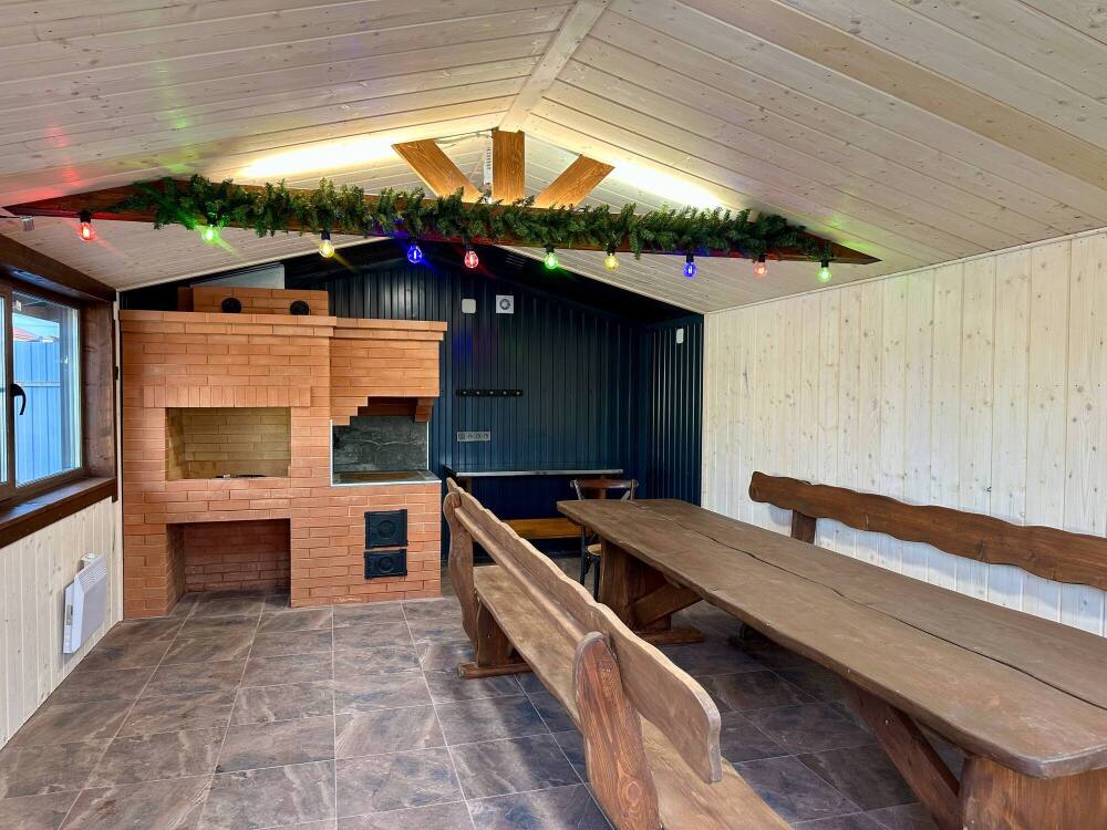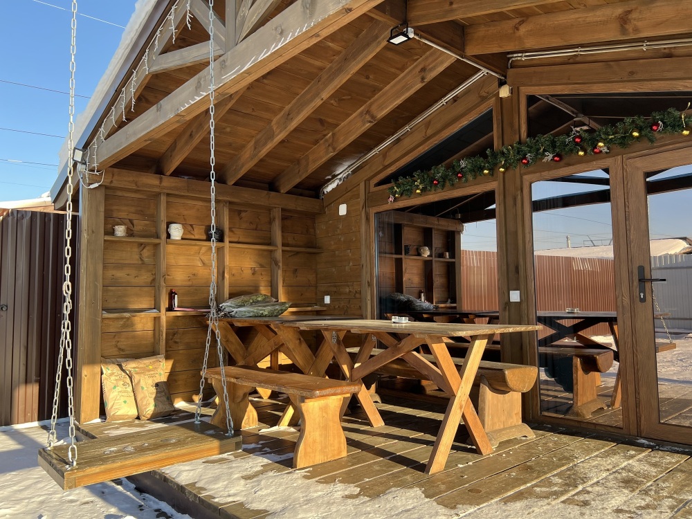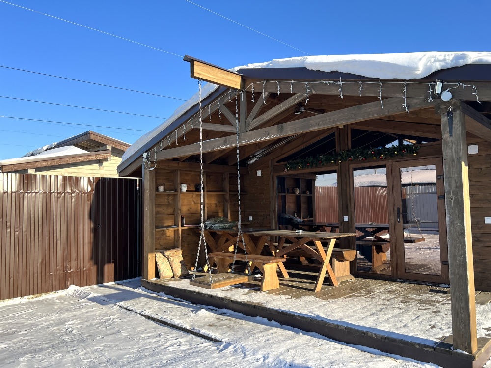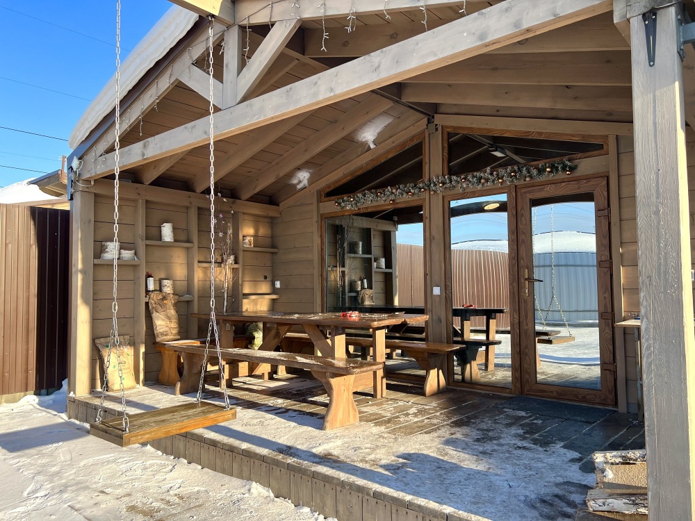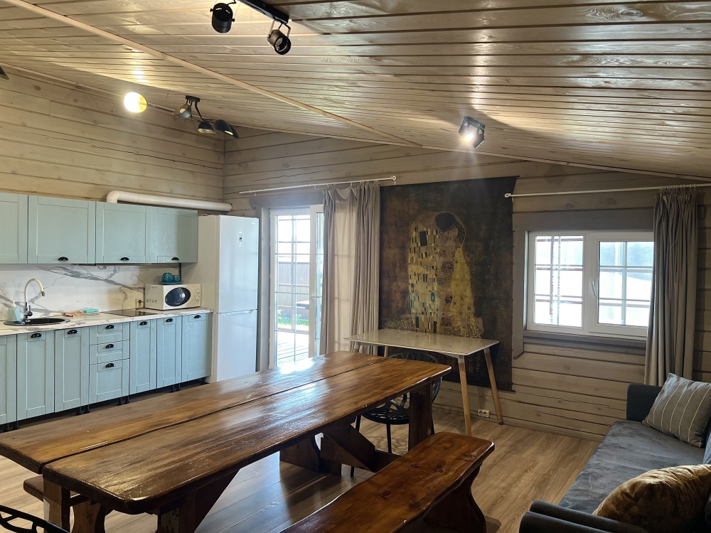 Деревянный светлый дом с кедровой парной для Ваших теплых встреч не выезжая из города. Дом для отдыха с современной электрокаменкой, в которой можно париться вениками и поддавать на камни! Парная полностью обшита кедром, имеется обливное устройство. В доме-бане 2 отдельные спальни (до 8 спальных мест), большая кухня- гостиная, обеденный стол со скамьями (14 посадочных мест), кухонный гарнитур со всем необходимым (посуда, чайник, микроволновая печь, индукционная плита, холодильник).