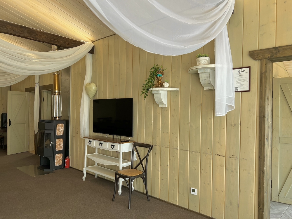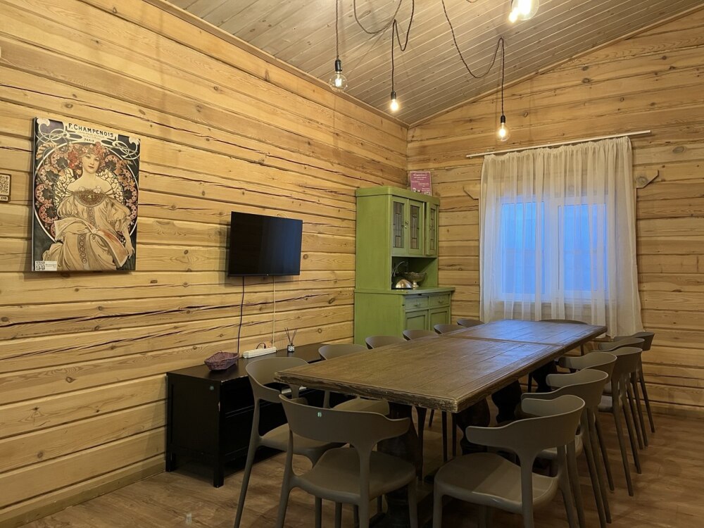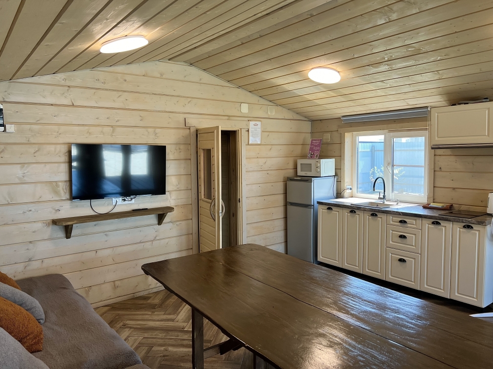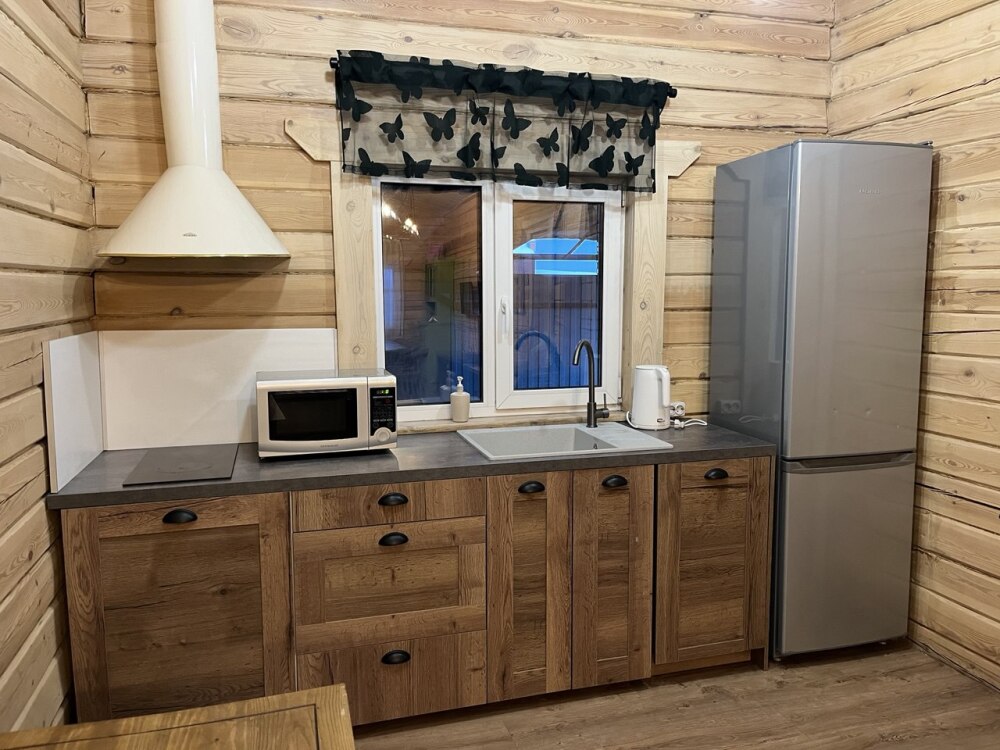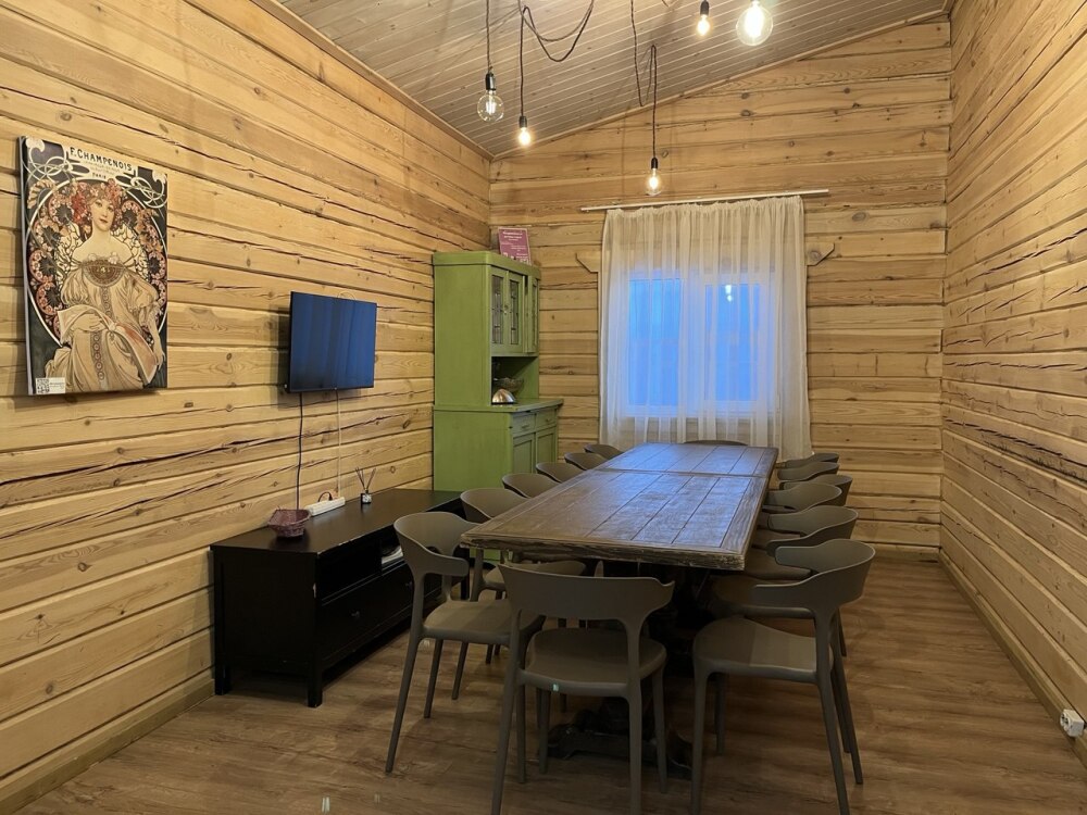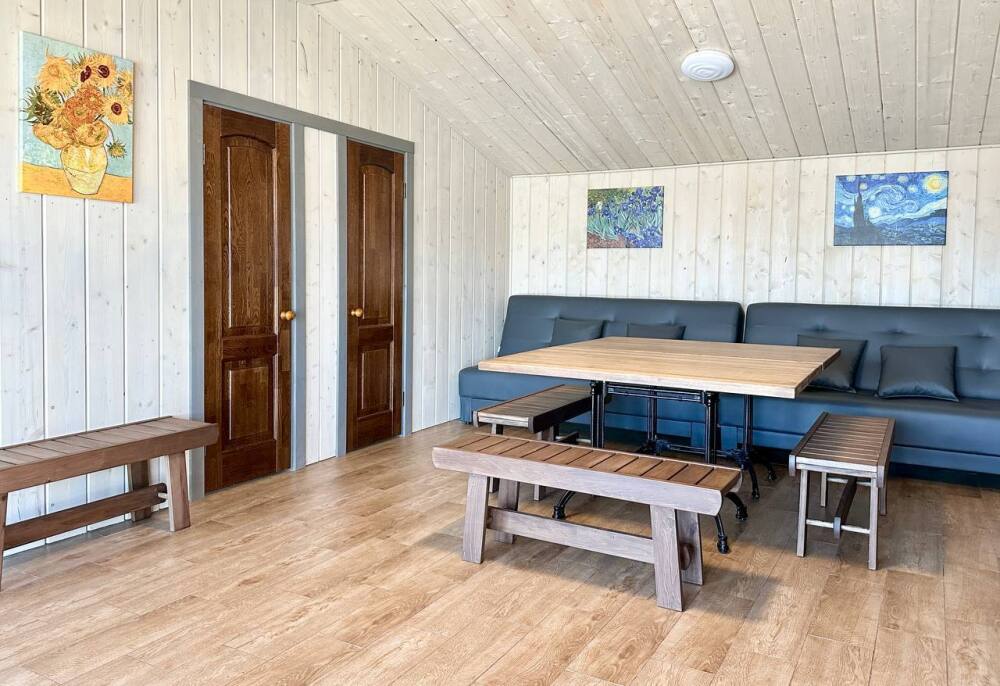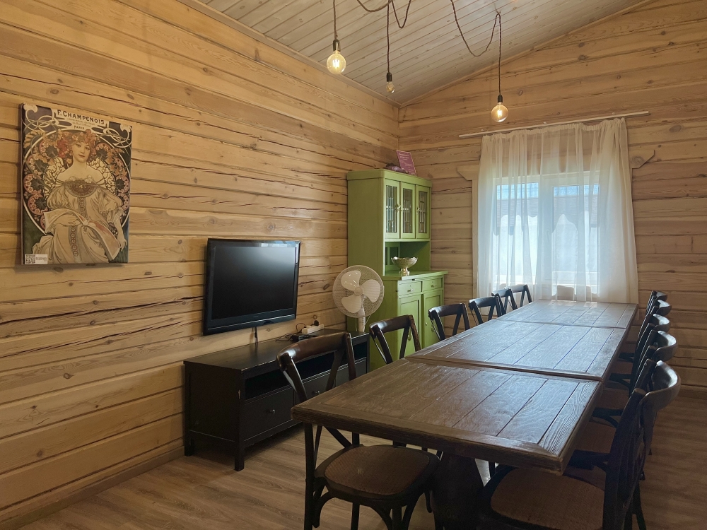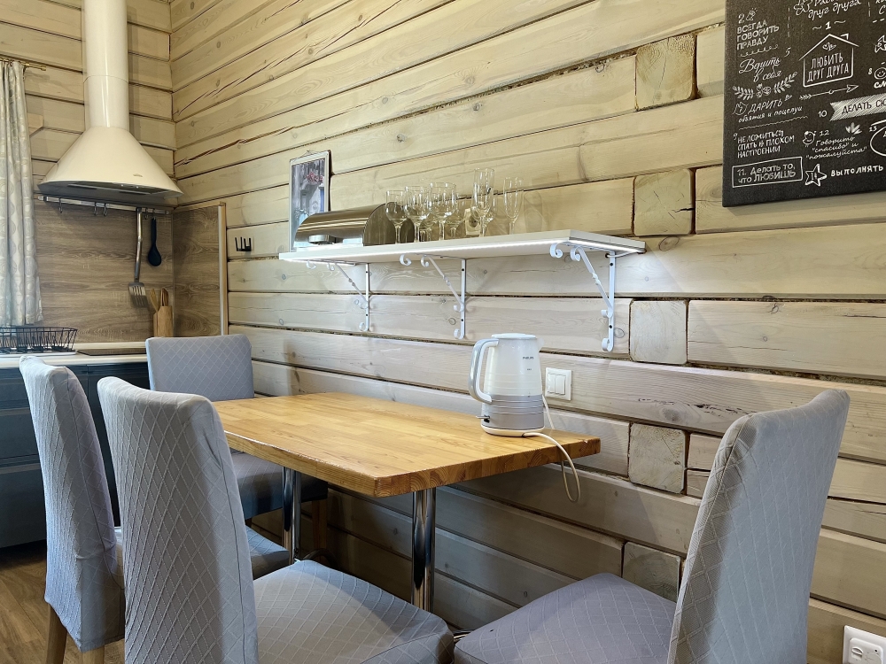 Деревянный, просторный дом-баня «Пар-Хаус 1» на дровах, в стиле Барнхаус для комфортного отдыха на природе, созданный с любовью к деталям. В доме- бане большая кухня-гостиная, обеденный стол со скамьями (14 посадочных мест), 2 раскладных дивана (4 спальных места), кухонный гарнитур со всем необходимым (посуда, чайник, микроволновая печь, индукционная плита, холодильник), телевизор, постельное белье, полотенца, чай, мыло, шампунь, тапочки, банные и туалетные принадлежности. В доме парная с душевой и сан. узлом.