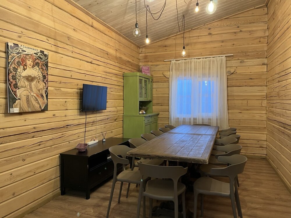 Деревянный, просторный дом-баня «Пар-Хаус 2», в стиле Барнхаус для комфортного отдыха на природе, созданный с любовью к деталям. Сауна с современной электрокаменкой, в которой можно париться вениками и поддавать на камни. В доме-бане большая кухня-гостиная, обеденный стол со скамьями (14 посадочных мест), 2 раскладных дивана (4 спальных места), кухонный гарнитур со всем необходимым (посуда, чайник, микроволновая печь, индукционная плита, холодильник), так же телевизор, постельное белье, полотенца, чай, мыло, шампунь, тапочки.