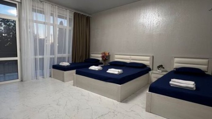 В номере: 1 двуспальная кровать, 2 односпальные кровати.