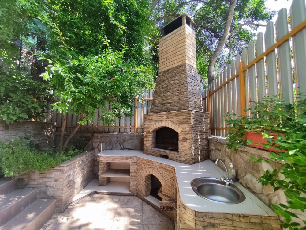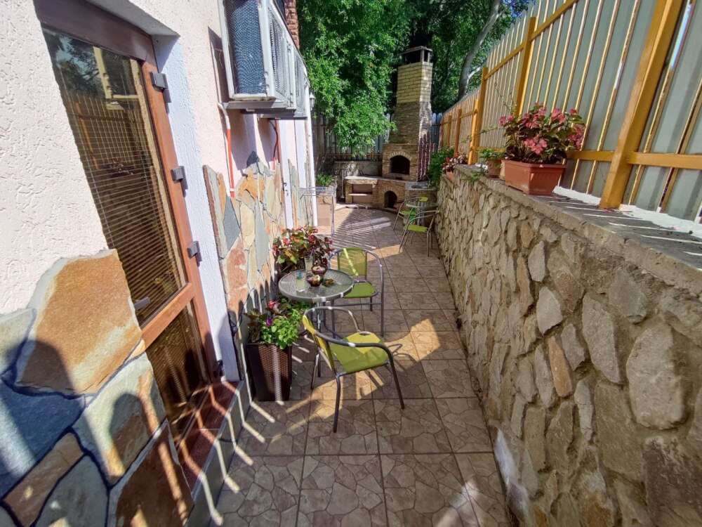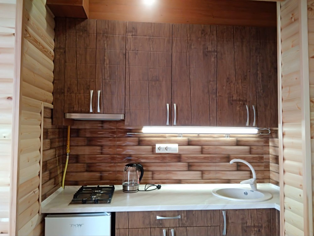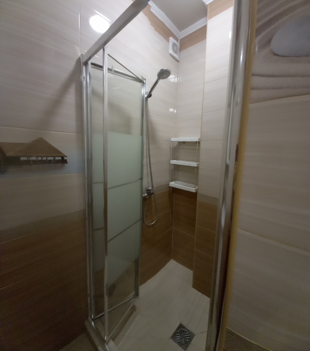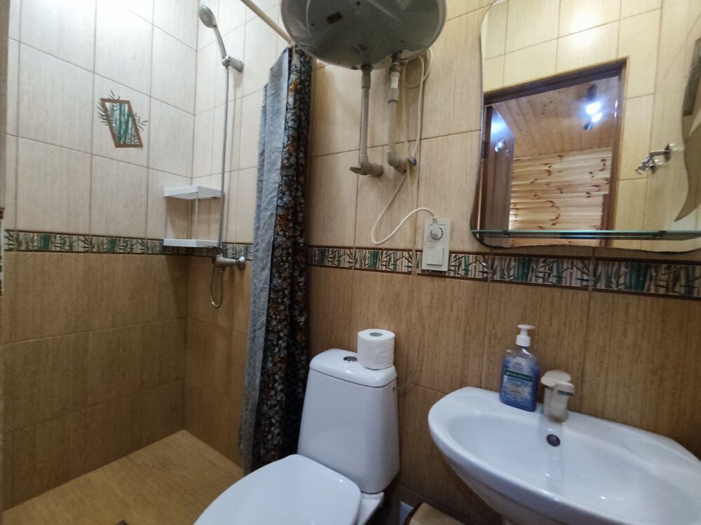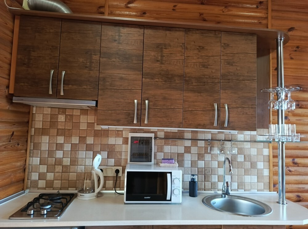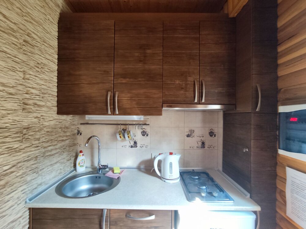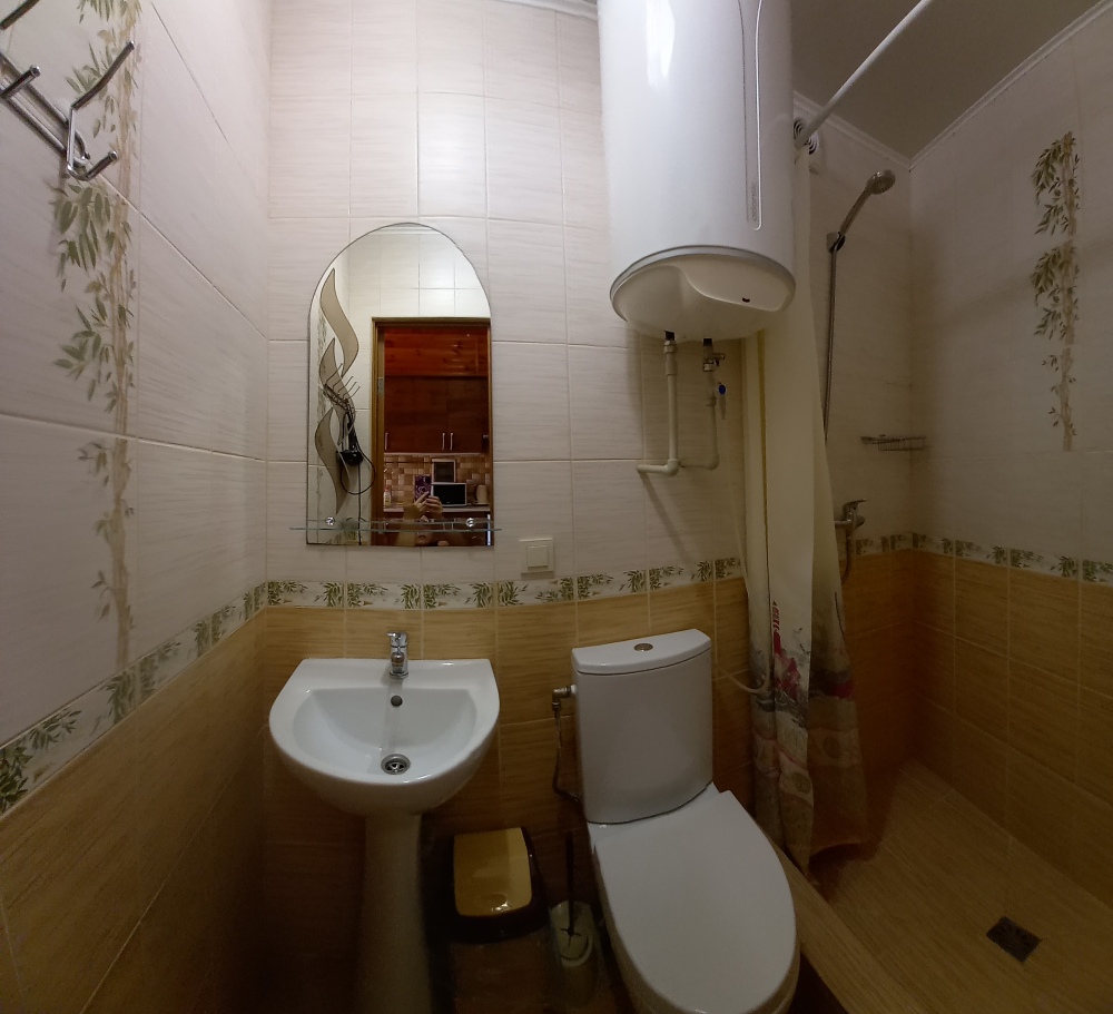 Есть дворик: столик и удобные кресла, сушилка для белья, которые относятся к данному номеру и их не занимают другие гости. В номере двуспальная кровать и кресло кровать, шкаф-купе, комод, кондиционер, теплый пол, телевизор, кабельное телевидение, санузел, фен, гладильная доска, утюг, мини-кухня: 2 конфорки, вытяжка, электрочайник, мойка для посуды, холодильник, посуда, WI-FI.