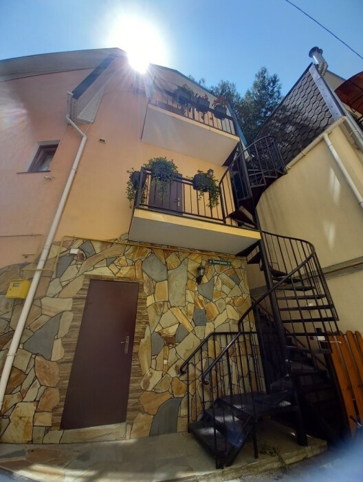 Он расположен в живописном уголке Крыма - Гурзуфе, рядом парк санатория «Гурзуфский» и детский лагерь «Жемчужный берег». Это трехэтажный коттедж, в котором 3 категории уютных номеров.