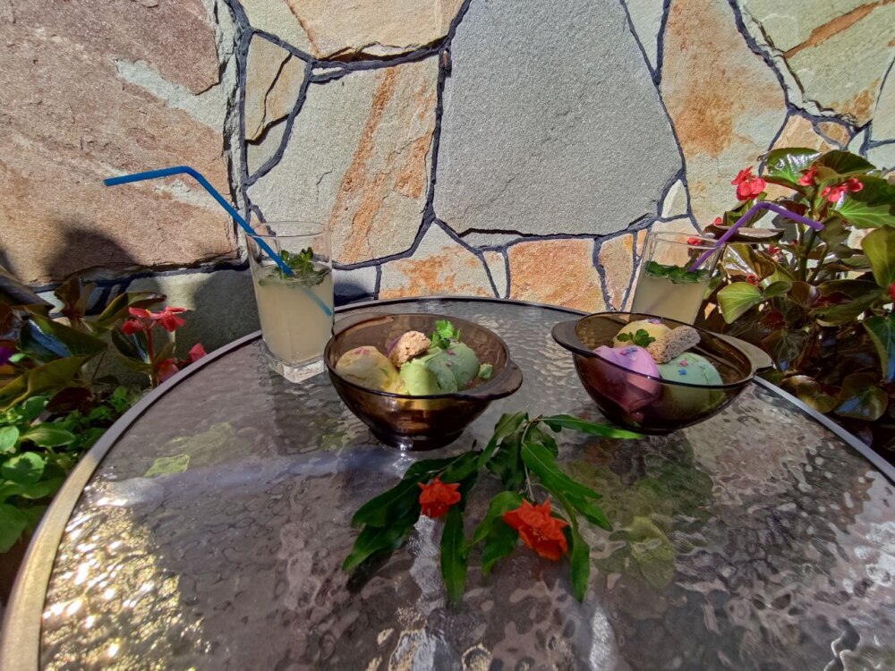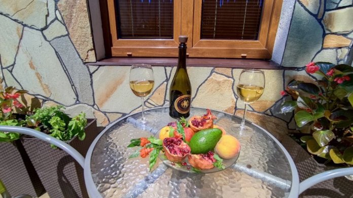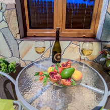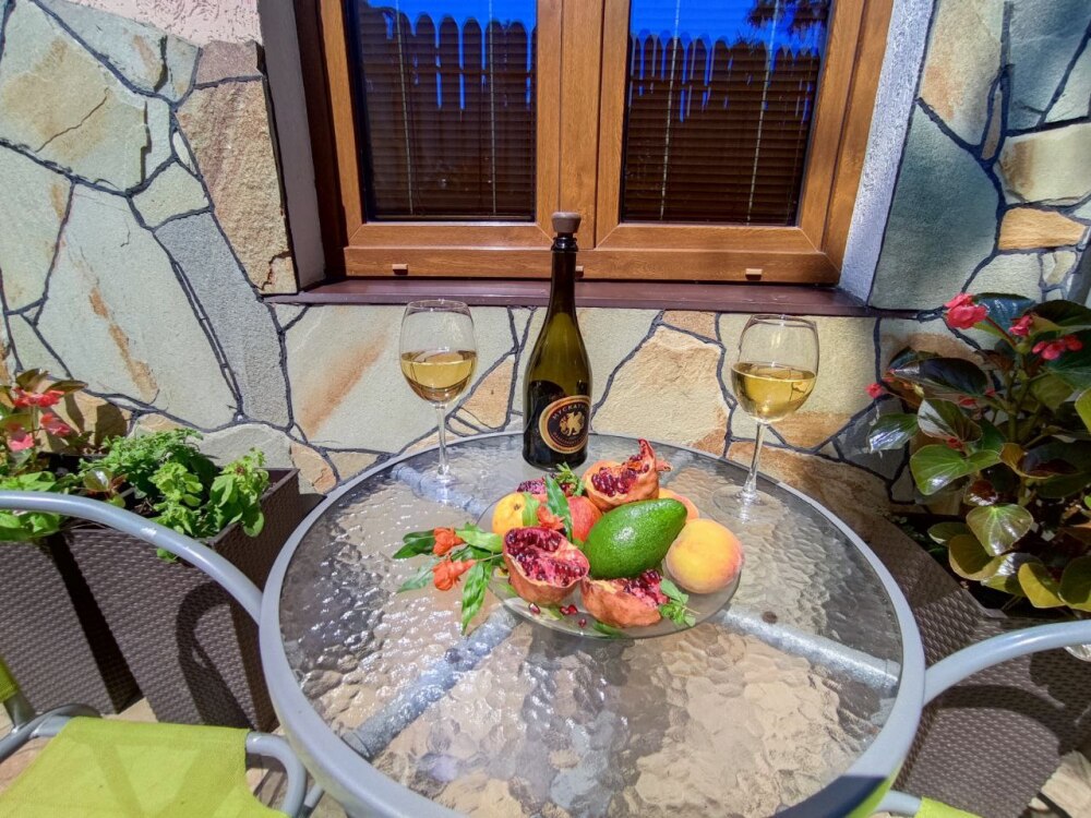 Есть дворик, в котором кресла и сушилка для белья, относящиеся именно к этому номеру. В номере двуспальная кровать и кресло кровать, вешалка, комод, кондиционер, теплый пол, телевизор, кабельное телевидение, фен, санузел, гладильная доска, утюг, мини-кухня: 2 конфорки, вытяжка, электрочайник, мойка для посуды, холодильник, посуда, WI-FI.