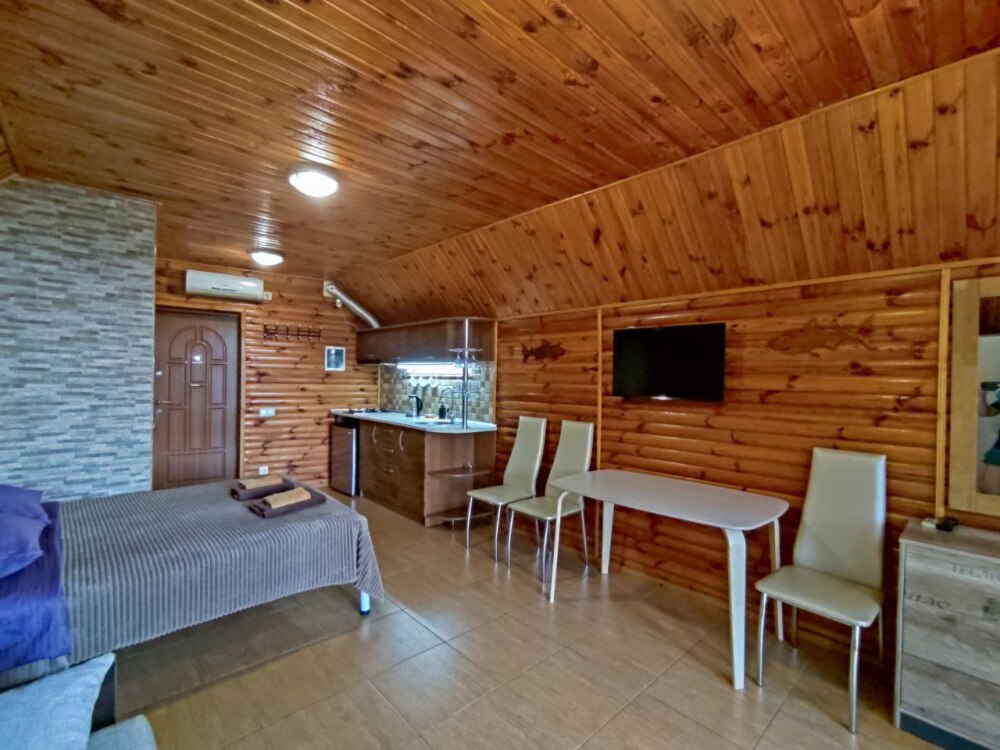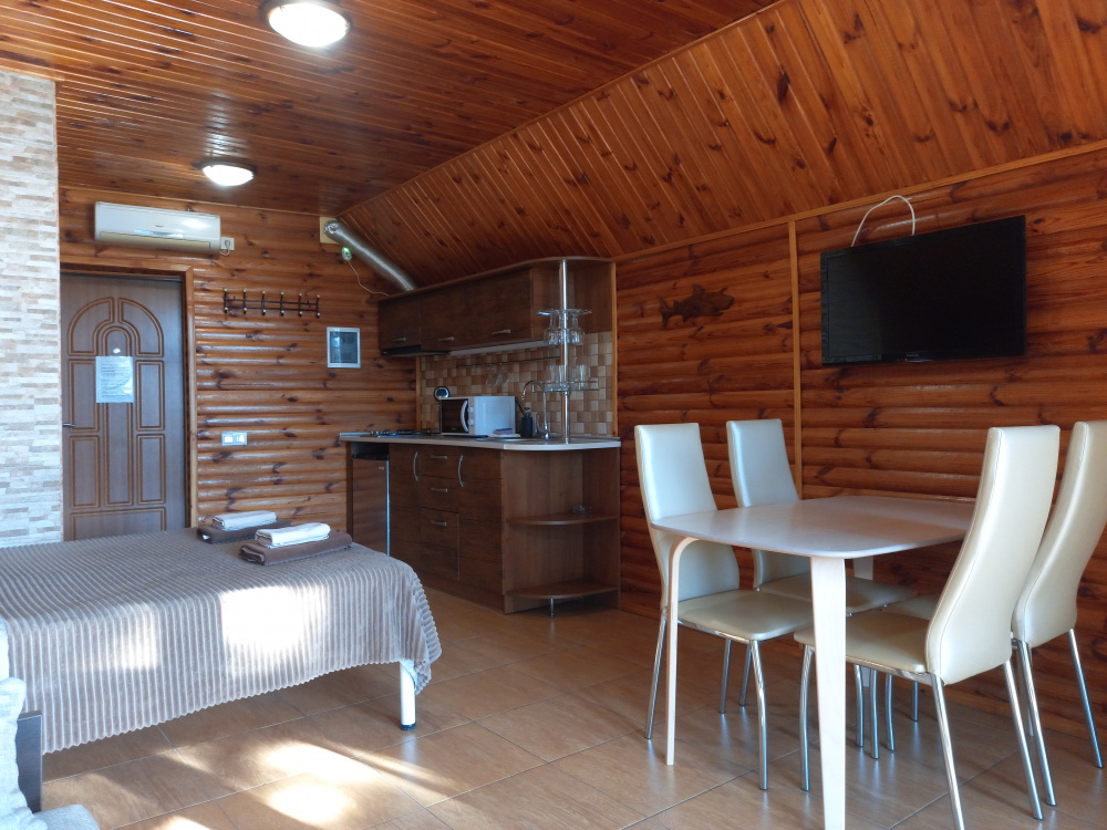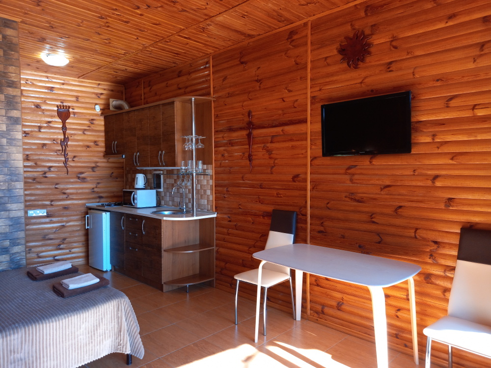 Каждый номер оборудован всем необходимым для комфортного отдыха: современная мебель, кондиционер, теплый пол, плазменный телевизор, кабельное телевидение, утюг, гладильная доска, газовая печь, электрочайник, холодильник, посуда, стиральная машина, сан узел, душевая, вода горячая и холодная постоянно, Wi-Fi.