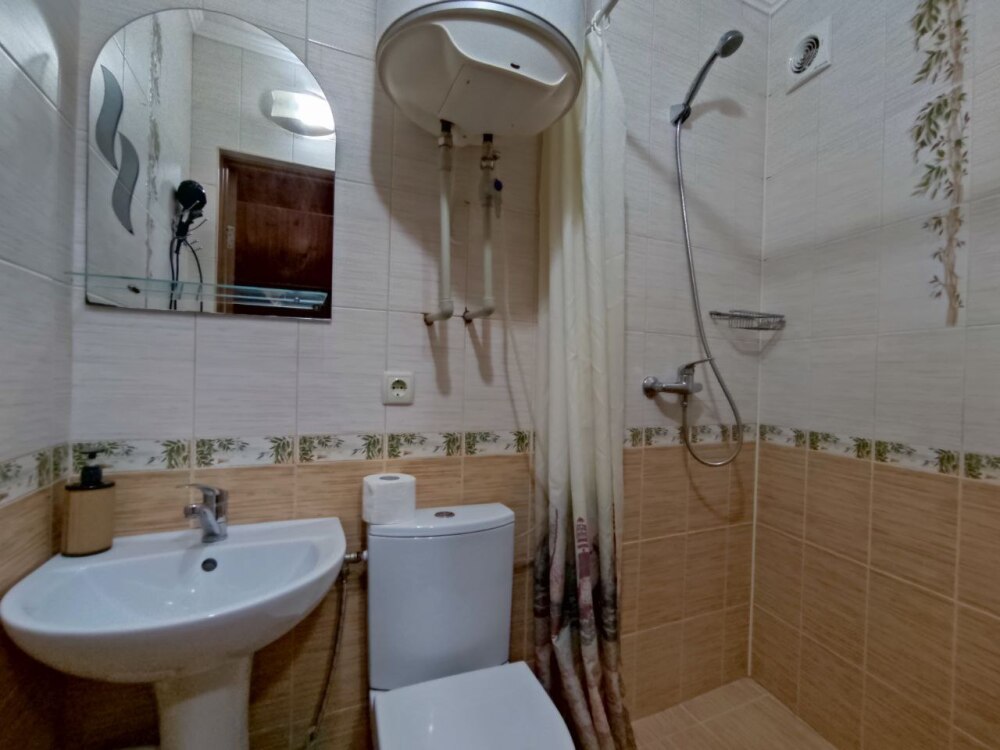 До пляжа и набережной 7-10 минут ходьбы (500 м), до ближайшего магазина и кафе 3-4 минуты, до рынка 7-10 минут, остановка автобуса - 3 мин.